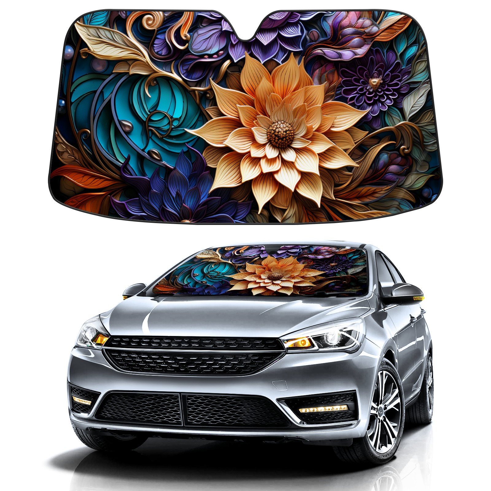 Car Windshield Sun Shade for Front Window Printing Foldable Vehicle Windshield Car Sun Visor Covers Automotive Window Protector Car Privacy Sun Blocker