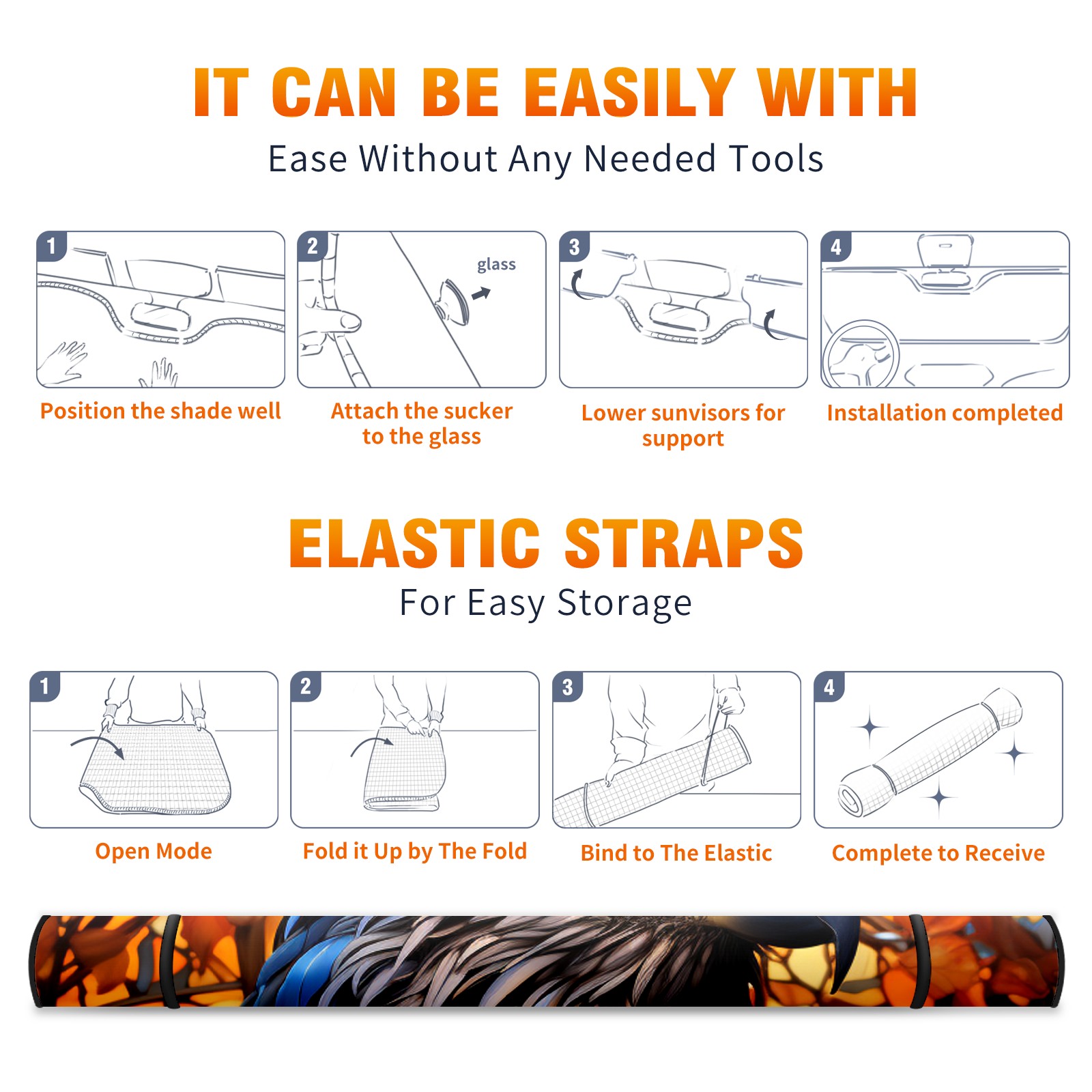 • <b>ZXIVGOQFR Foldable Premium Car Windshield Sunshade is your great solution to reduce your car’s interior temperature dramatically! This is definitely a must-have item for your summer travel! </b> <br> ●<b>Size: 63"L x 33.5"W </b> <br></b> ●<b>Blocking Uv Rays & Heat Insulation<br></b> Our vehicle sunshade provides effective UV, sun, and summer heat protection .Maintains dashboards by preventing fading and cracking <br> ●<b>Easy-To-Store Folding Design Makes Storage Convenient <br></b> ZXIVGOQFR car sunshades come with removable suction cups and elastic bands that you can install easily and quickly, and the removable suction cups will not leave any marks on your windows when removed. Within seconds, windshield visor can be installed and removed. When not in use,the front windshield can be easily and effectively placed on the door pocket or the dashboard, which is beautiful and does not take up space in the car.<br> <br> <b>PUT UP A 'PROTECTIVE UMBRELLA' FOR YOUR BELOVED CAR!</b>