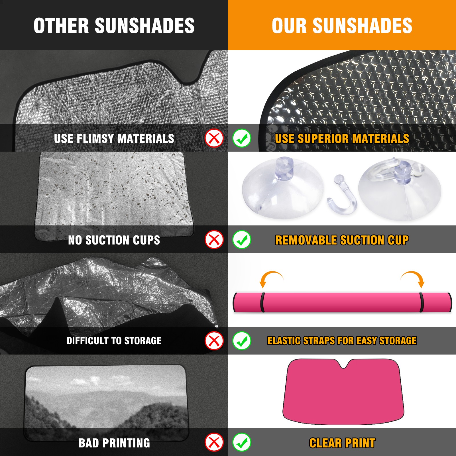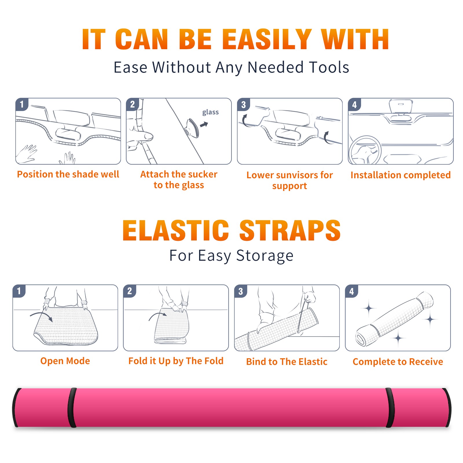 • <b>ZXIVGOQFR Foldable Premium Car Windshield Sunshade is your great solution to reduce your car’s interior temperature dramatically! This is definitely a must-have item for your summer travel! </b> <br> ●<b>Size: 63"L x 33.5"W </b> <br></b> ●<b>Blocking Uv Rays & Heat Insulation<br></b> Our vehicle sunshade provides effective UV, sun, and summer heat protection .Maintains dashboards by preventing fading and cracking <br> ●<b>Easy-To-Store Folding Design Makes Storage Convenient <br></b> ZXIVGOQFR car sunshades come with removable suction cups and elastic bands that you can install easily and quickly, and the removable suction cups will not leave any marks on your windows when removed. Within seconds, windshield visor can be installed and removed. When not in use,the front windshield can be easily and effectively placed on the door pocket or the dashboard, which is beautiful and does not take up space in the car.<br> <br> <b>PUT UP A 'PROTECTIVE UMBRELLA' FOR YOUR BELOVED CAR!</b>