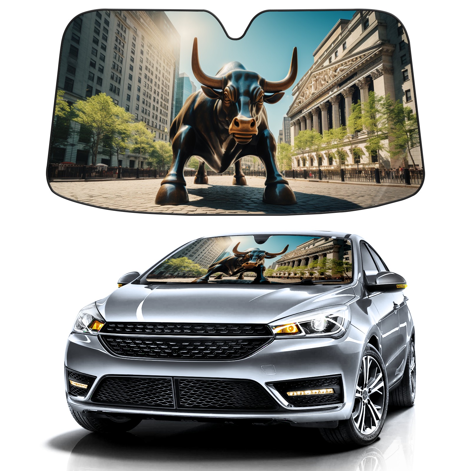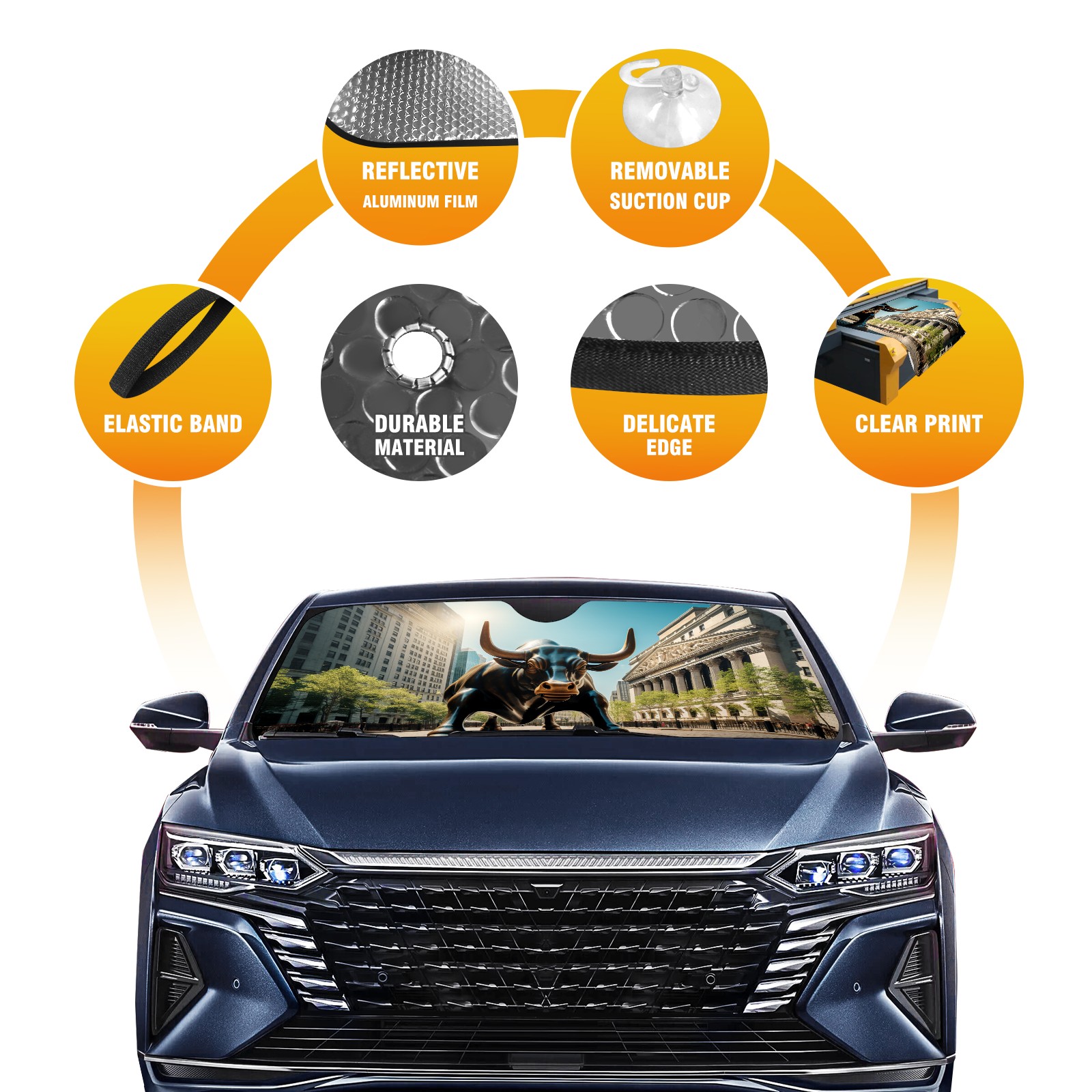 <b>ZXIVGOQFR Foldable Premium Car Windshield Sunshade is your great solution to reduce your car’s interior temperature dramatically! This is definitely a must-have item for your summer travel! </b> <br> ●<b>Size: 63"L x 33.5"W </b> <br></b> ●<b>Blocking Uv Rays & Heat Insulation<br></b> Our vehicle sunshade provides effective UV, sun, and summer heat protection .Maintains dashboards by preventing fading and cracking <br> ●<b>Easy-To-Store Folding Design Makes Storage Convenient <br></b> ZXIVGOQFR car sunshades come with removable suction cups and elastic bands that you can install easily and quickly, and the removable suction cups will not leave any marks on your windows when removed. Within seconds, windshield visor can be installed and removed. When not in use,the front windshield can be easily and effectively placed on the door pocket or the dashboard, which is beautiful and does not take up space in the car.<br> <br> <b>PUT UP A 'PROTECTIVE UMBRELLA' FOR YOUR BELOVED CAR!</b>