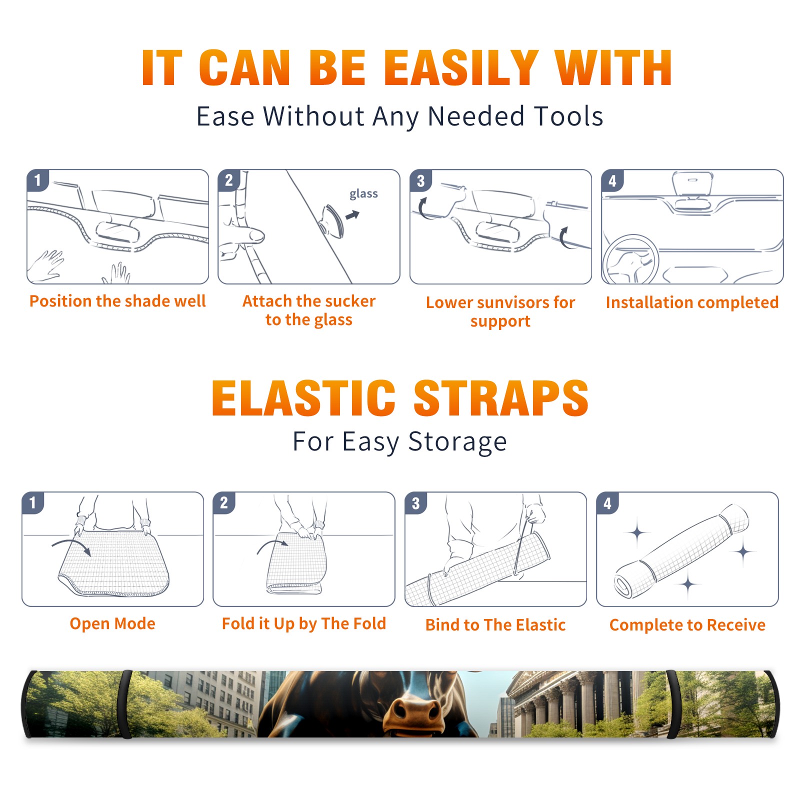 • <b>ZXIVGOQFR Foldable Premium Car Windshield Sunshade is your great solution to reduce your car’s interior temperature dramatically! This is definitely a must-have item for your summer travel! </b> <br> ●<b>Size: 63"L x 33.5"W </b> <br></b> ●<b>Blocking Uv Rays & Heat Insulation<br></b> Our vehicle sunshade provides effective UV, sun, and summer heat protection .Maintains dashboards by preventing fading and cracking <br> ●<b>Easy-To-Store Folding Design Makes Storage Convenient <br></b> ZXIVGOQFR car sunshades come with removable suction cups and elastic bands that you can install easily and quickly, and the removable suction cups will not leave any marks on your windows when removed. Within seconds, windshield visor can be installed and removed. When not in use,the front windshield can be easily and effectively placed on the door pocket or the dashboard, which is beautiful and does not take up space in the car.<br> <br> <b>PUT UP A 'PROTECTIVE UMBRELLA' FOR YOUR BELOVED CAR!</b>