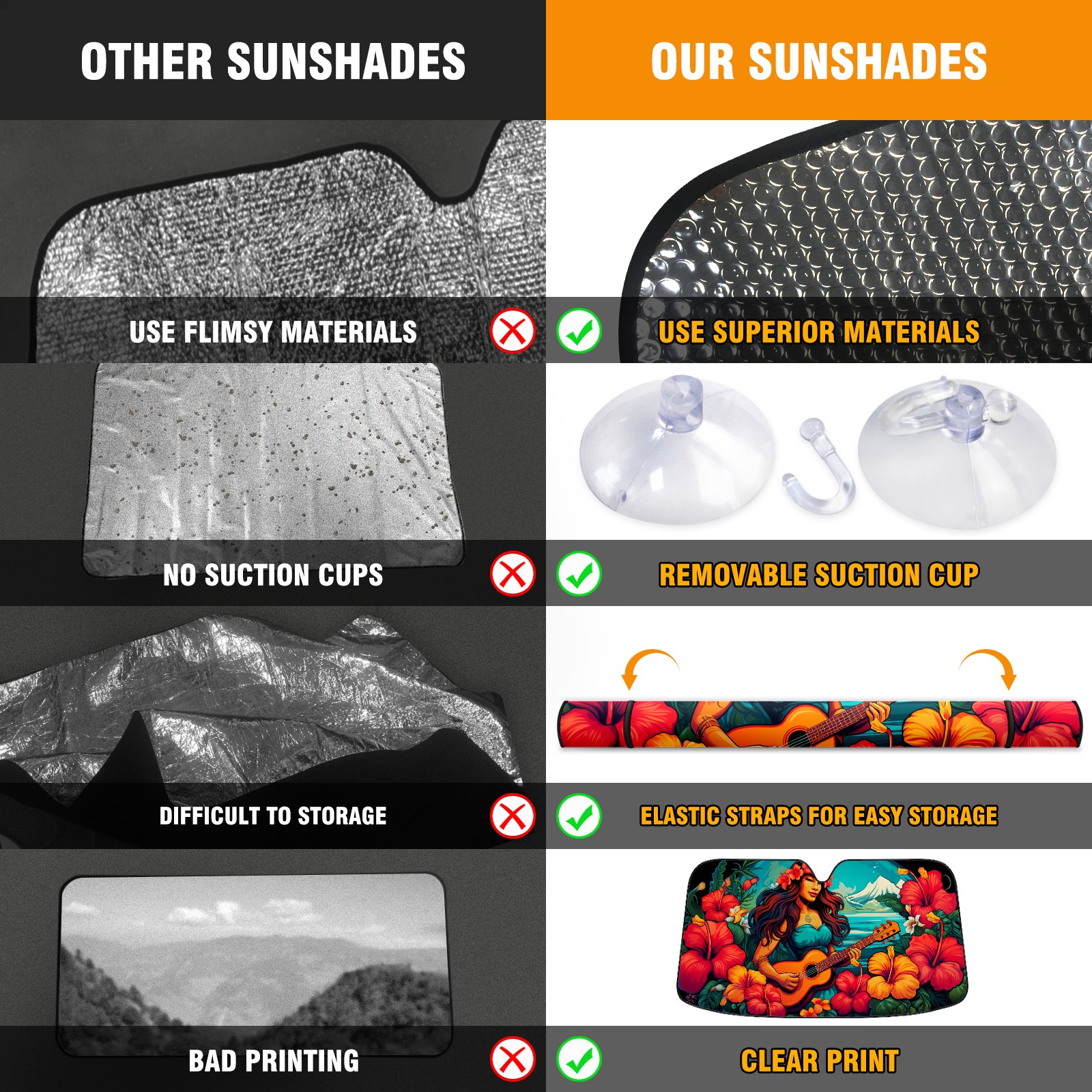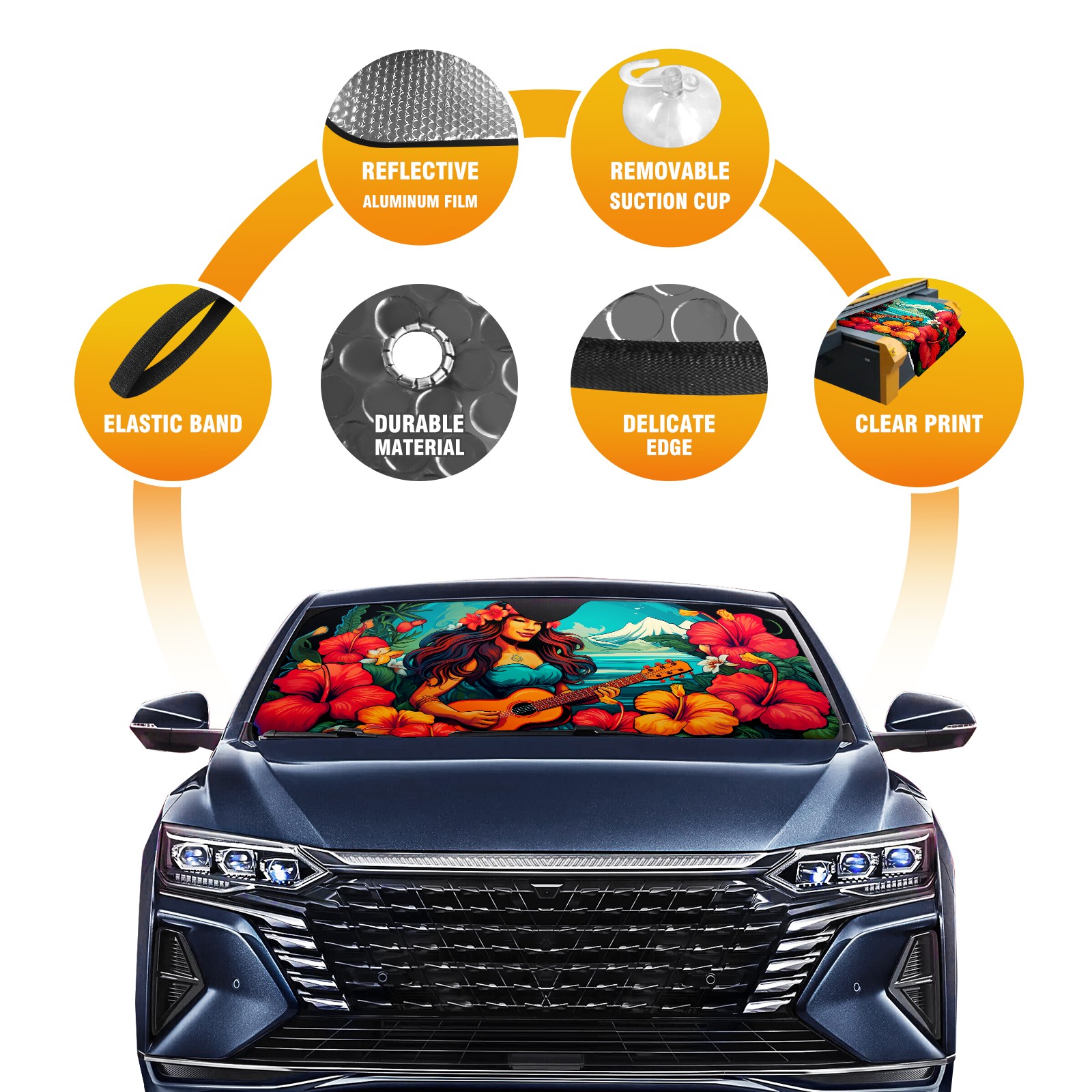 <b>ZXIVGOQFR Foldable Premium Car Windshield Sunshade is your great solution to reduce your car’s interior temperature dramatically! This is definitely a must-have item for your summer travel! </b> <br> ●<b>Size: 63"L x 33.5"W </b> <br></b> ●<b>Blocking Uv Rays & Heat Insulation<br></b> Our vehicle sunshade provides effective UV, sun, and summer heat protection .Maintains dashboards by preventing fading and cracking <br> ●<b>Easy-To-Store Folding Design Makes Storage Convenient <br></b> ZXIVGOQFR car sunshades come with removable suction cups and elastic bands that you can install easily and quickly, and the removable suction cups will not leave any marks on your windows when removed. Within seconds, windshield visor can be installed and removed. When not in use,the front windshield can be easily and effectively placed on the door pocket or the dashboard, which is beautiful and does not take up space in the car.<br> <br> <b>PUT UP A 'PROTECTIVE UMBRELLA' FOR YOUR BELOVED CAR!</b>
