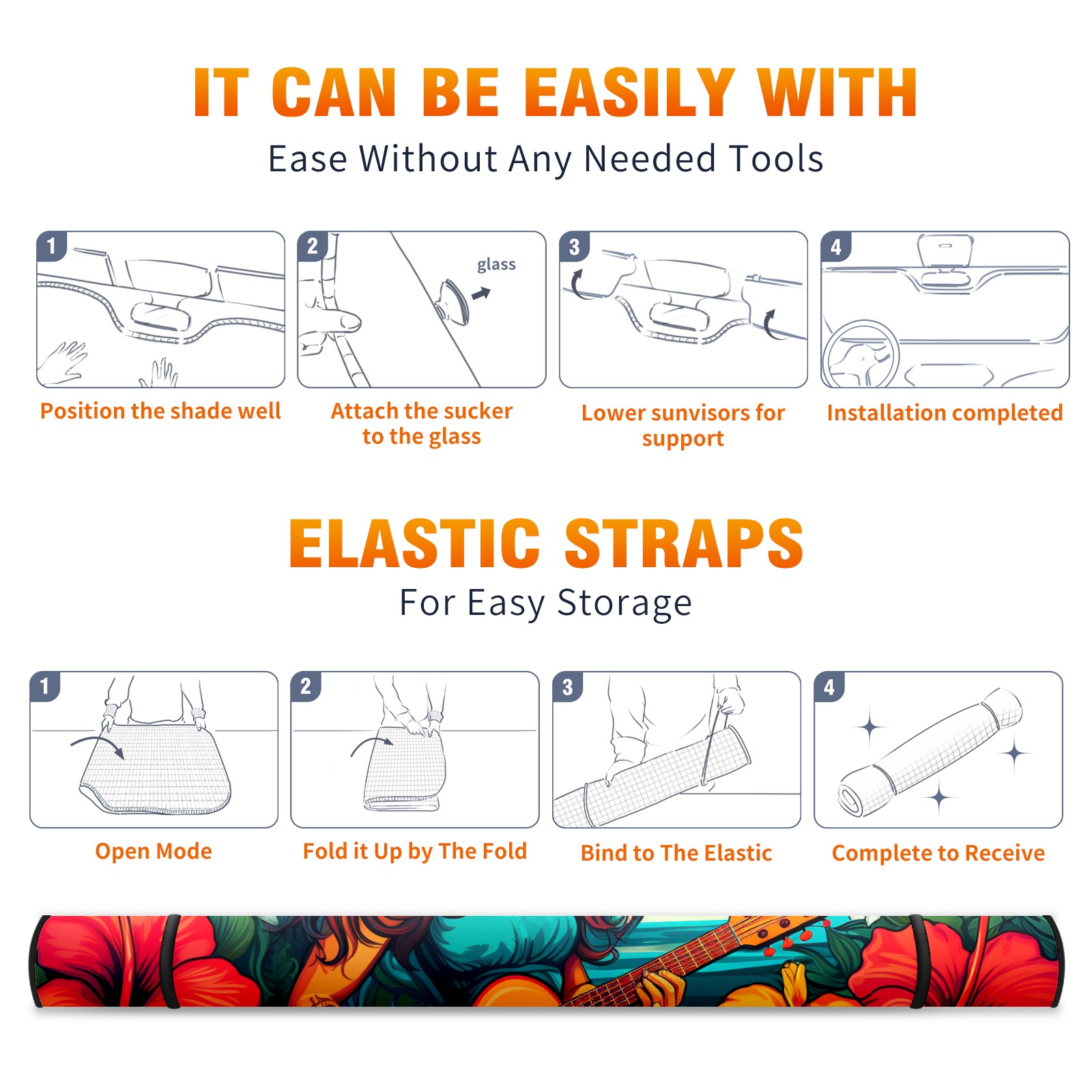 • <b>ZXIVGOQFR Foldable Premium Car Windshield Sunshade is your great solution to reduce your car’s interior temperature dramatically! This is definitely a must-have item for your summer travel! </b> <br> ●<b>Size: 63"L x 33.5"W </b> <br></b> ●<b>Blocking Uv Rays & Heat Insulation<br></b> Our vehicle sunshade provides effective UV, sun, and summer heat protection .Maintains dashboards by preventing fading and cracking <br> ●<b>Easy-To-Store Folding Design Makes Storage Convenient <br></b> ZXIVGOQFR car sunshades come with removable suction cups and elastic bands that you can install easily and quickly, and the removable suction cups will not leave any marks on your windows when removed. Within seconds, windshield visor can be installed and removed. When not in use,the front windshield can be easily and effectively placed on the door pocket or the dashboard, which is beautiful and does not take up space in the car.<br> <br> <b>PUT UP A 'PROTECTIVE UMBRELLA' FOR YOUR BELOVED CAR!</b>