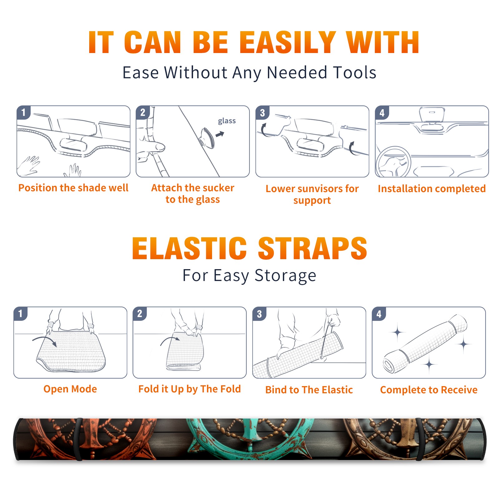 <b>ZXIVGOQFR Foldable Premium Car Windshield Sunshade is your great solution to reduce your car’s interior temperature dramatically! This is definitely a must-have item for your summer travel! </b> <br> ●<b>Size: 63"L x 33.5"W </b> <br></b> ●<b>Blocking Uv Rays & Heat Insulation<br></b> Our vehicle sunshade provides effective UV, sun, and summer heat protection .Maintains dashboards by preventing fading and cracking <br> ●<b>Easy-To-Store Folding Design Makes Storage Convenient <br></b> ZXIVGOQFR car sunshades come with removable suction cups and elastic bands that you can install easily and quickly, and the removable suction cups will not leave any marks on your windows when removed. Within seconds, windshield visor can be installed and removed. When not in use,the front windshield can be easily and effectively placed on the door pocket or the dashboard, which is beautiful and does not take up space in the car.<br> <br> <b>PUT UP A 'PROTECTIVE UMBRELLA' FOR YOUR BELOVED CAR!</b>
