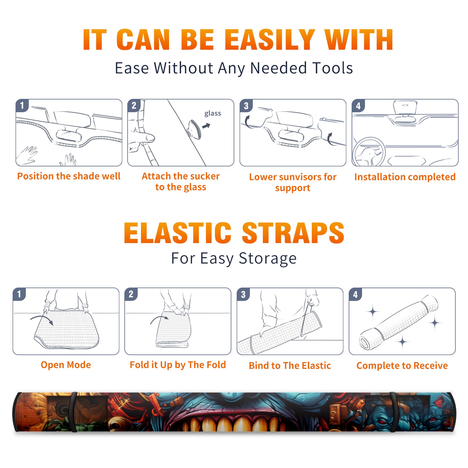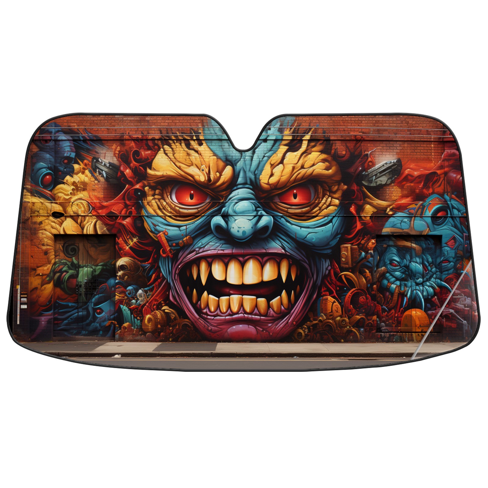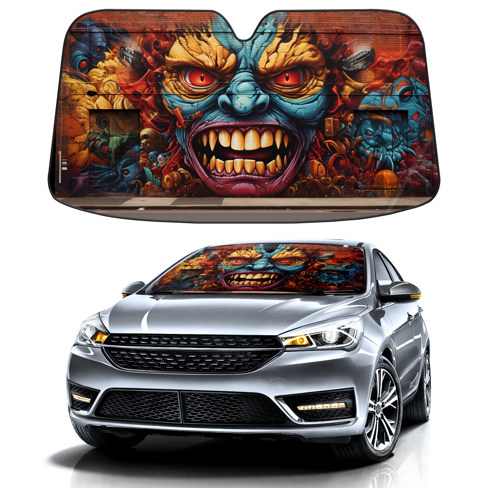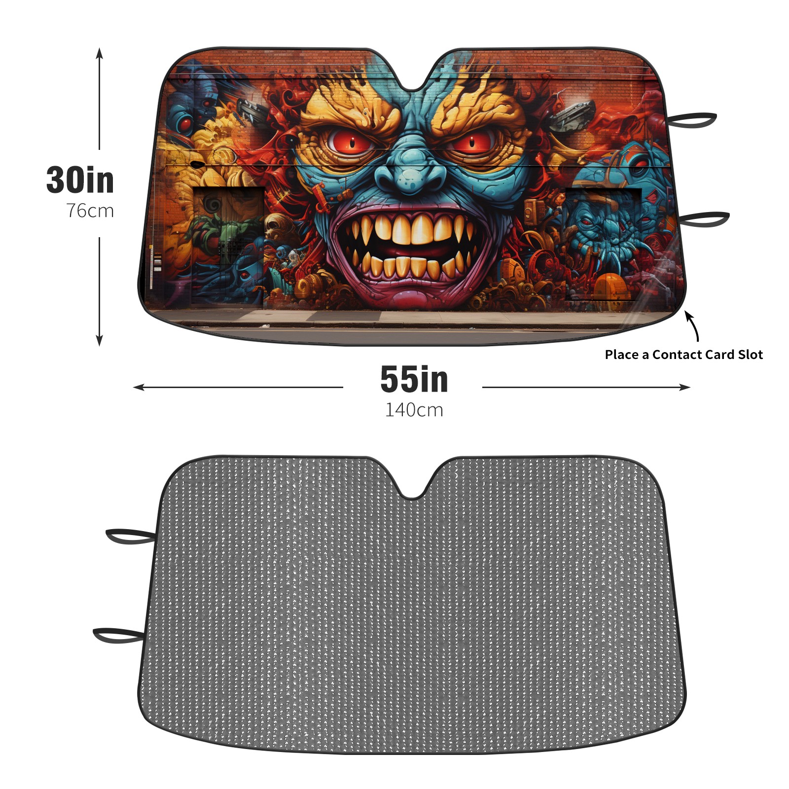 Car Windshield Sun Shade for Front Window Graffiti Foldable Vehicle Windshield Car Sun Visor Covers Automotive Window Protector Car Privacy Sun Blocker