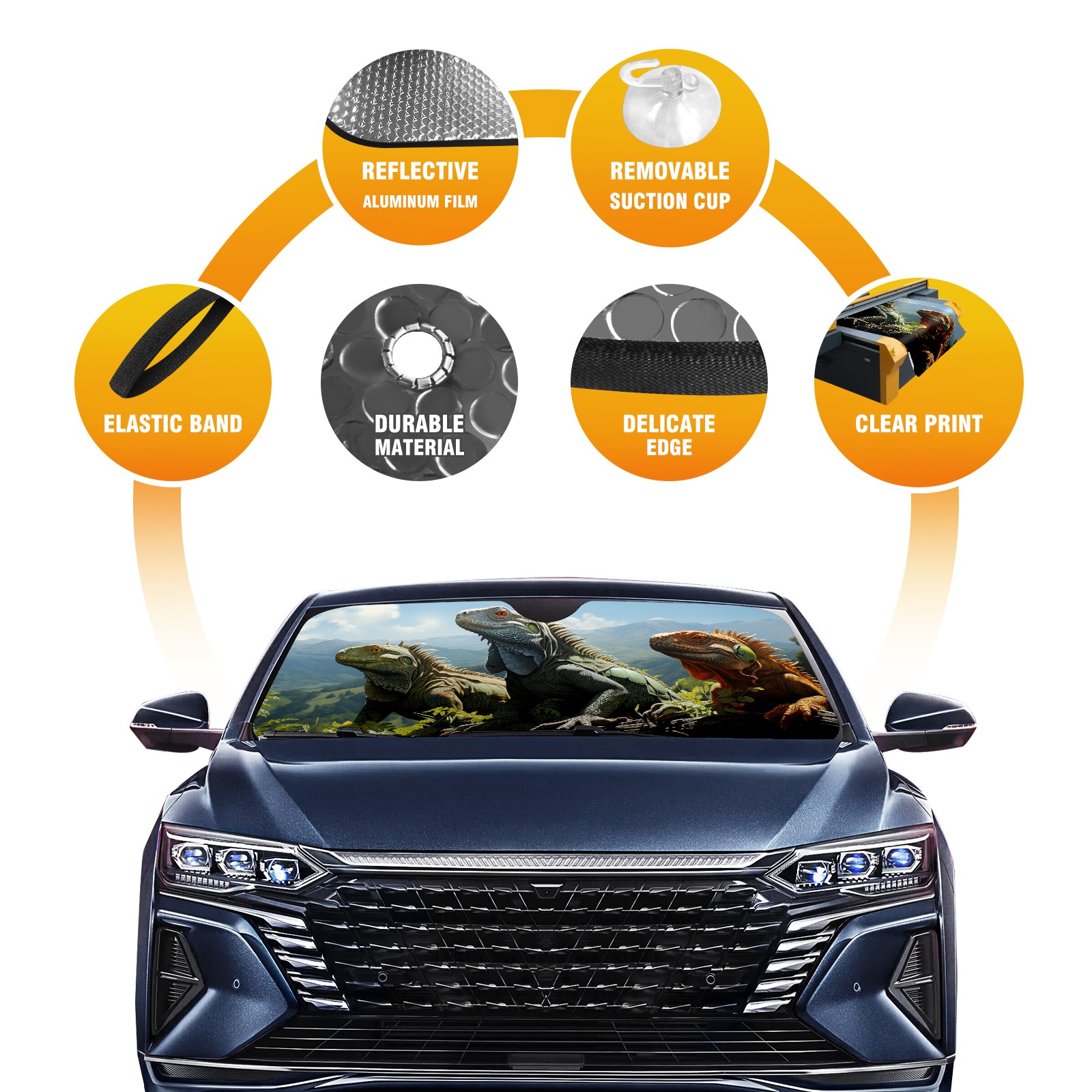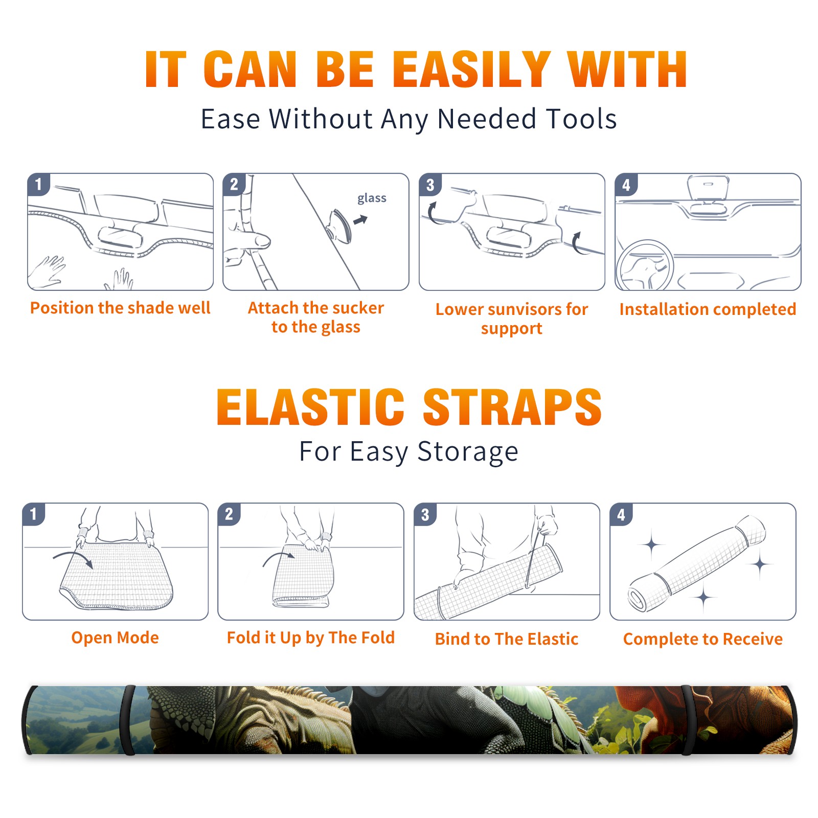 <b>ZXIVGOQFR Foldable Premium Car Windshield Sunshade is your great solution to reduce your car’s interior temperature dramatically! This is definitely a must-have item for your summer travel! </b> <br> ●<b>Size: 63"L x 33.5"W </b> <br></b> ●<b>Blocking Uv Rays & Heat Insulation<br></b> Our vehicle sunshade provides effective UV, sun, and summer heat protection .Maintains dashboards by preventing fading and cracking <br> ●<b>Easy-To-Store Folding Design Makes Storage Convenient <br></b> ZXIVGOQFR car sunshades come with removable suction cups and elastic bands that you can install easily and quickly, and the removable suction cups will not leave any marks on your windows when removed. Within seconds, windshield visor can be installed and removed. When not in use,the front windshield can be easily and effectively placed on the door pocket or the dashboard, which is beautiful and does not take up space in the car.<br> <br> <b>PUT UP A 'PROTECTIVE UMBRELLA' FOR YOUR BELOVED CAR!</b>