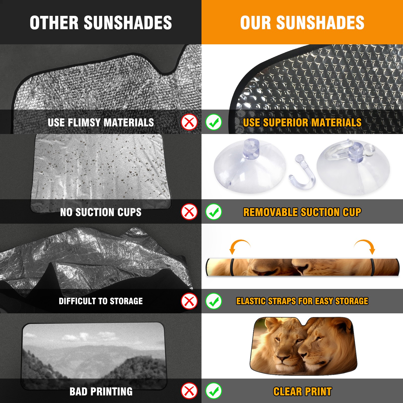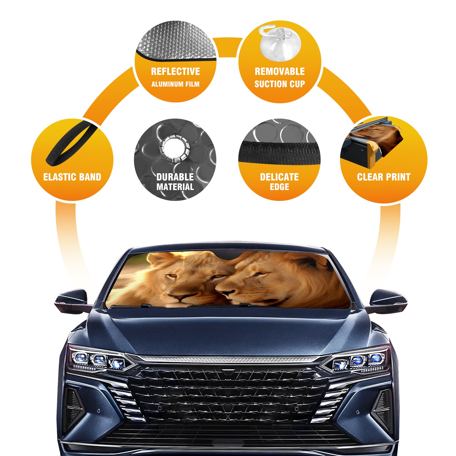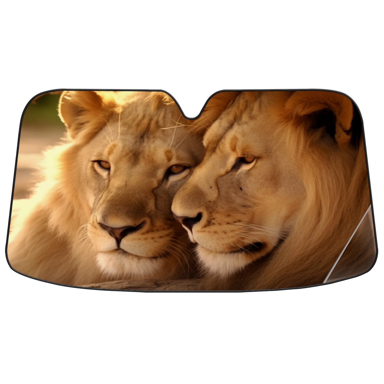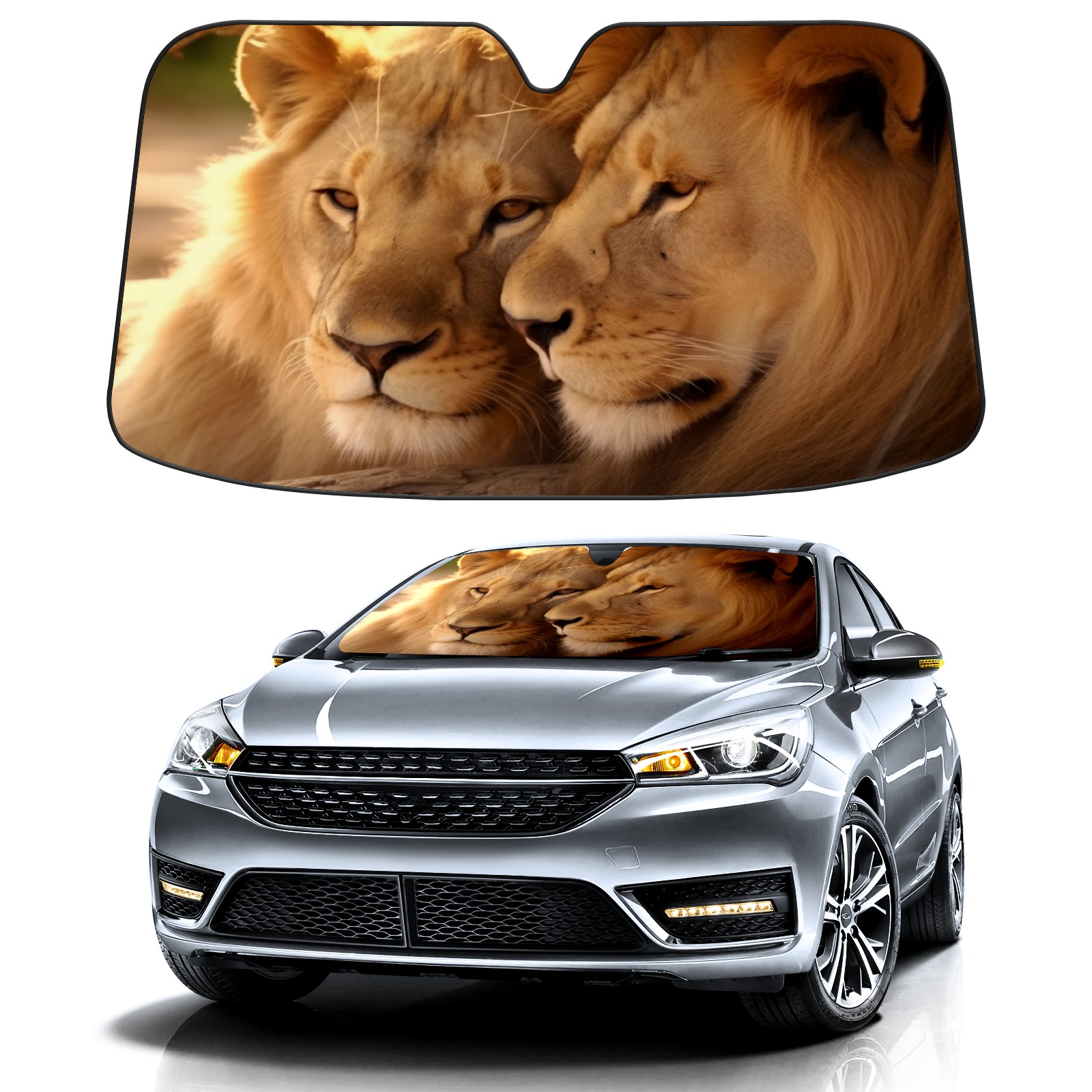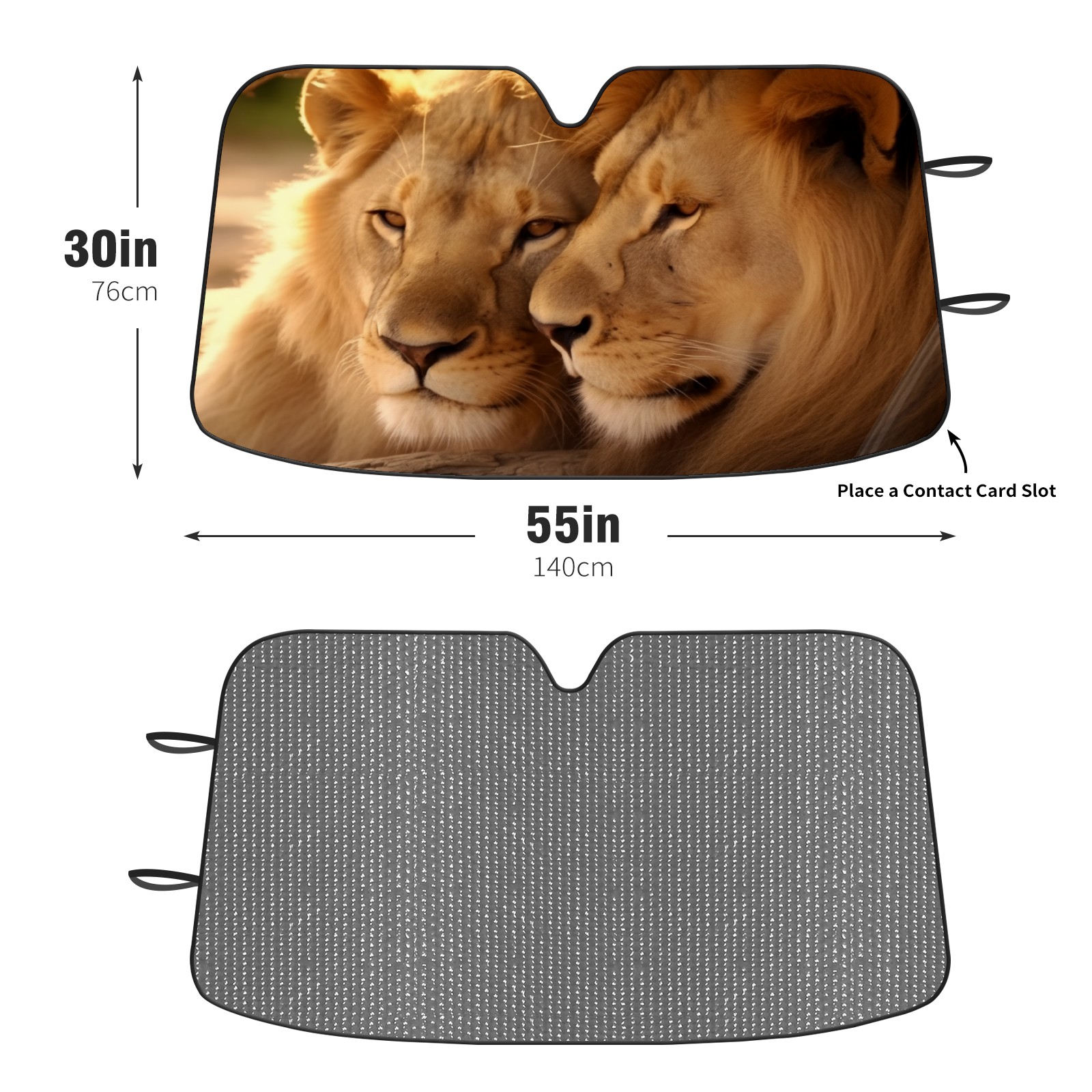 Car Windshield Sun Shade for Front Window Two Lions (1) Foldable Vehicle Windshield Car Sun Visor Covers Automotive Window Protector Car Privacy Sun Blocker