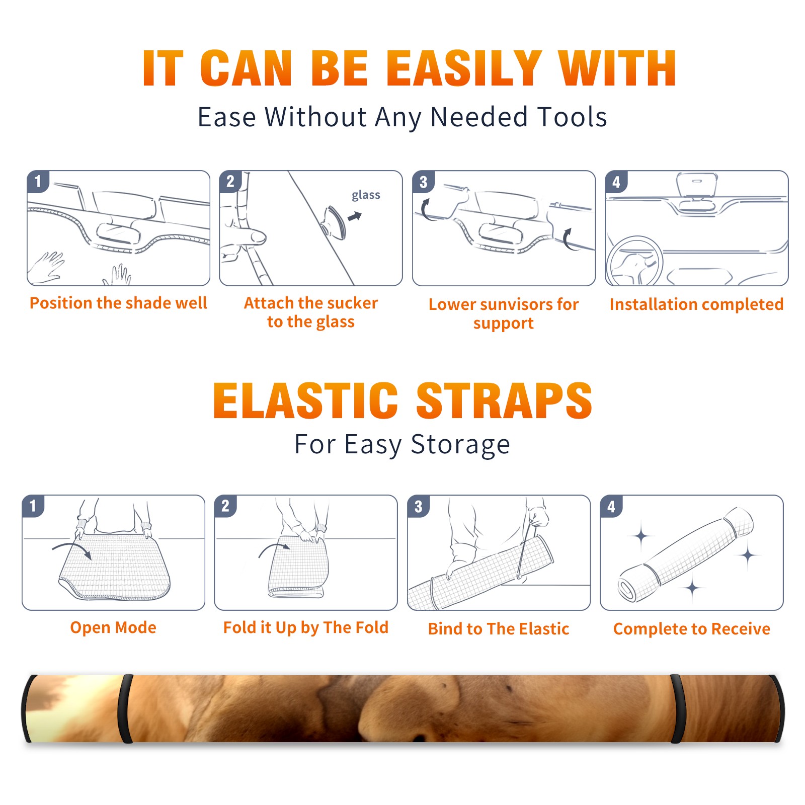 <b>ZXIVGOQFR Foldable Premium Car Windshield Sunshade is your great solution to reduce your car’s interior temperature dramatically! This is definitely a must-have item for your summer travel! </b> <br> ●<b>Size: 63"L x 33.5"W </b> <br></b> ●<b>Blocking Uv Rays & Heat Insulation<br></b> Our vehicle sunshade provides effective UV, sun, and summer heat protection .Maintains dashboards by preventing fading and cracking <br> ●<b>Easy-To-Store Folding Design Makes Storage Convenient <br></b> ZXIVGOQFR car sunshades come with removable suction cups and elastic bands that you can install easily and quickly, and the removable suction cups will not leave any marks on your windows when removed. Within seconds, windshield visor can be installed and removed. When not in use,the front windshield can be easily and effectively placed on the door pocket or the dashboard, which is beautiful and does not take up space in the car.<br> <br> <b>PUT UP A 'PROTECTIVE UMBRELLA' FOR YOUR BELOVED CAR!</b>