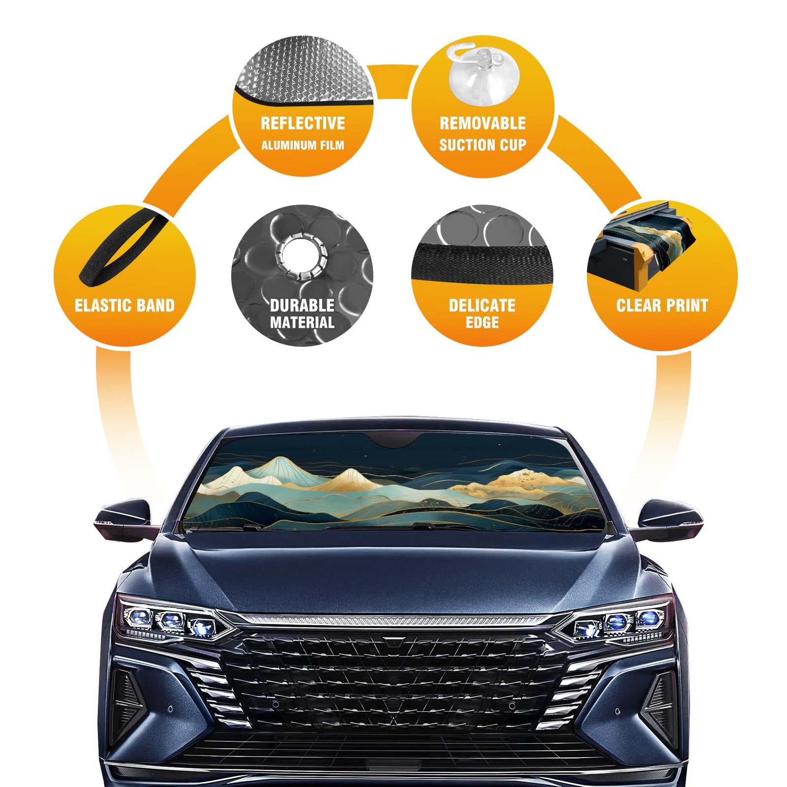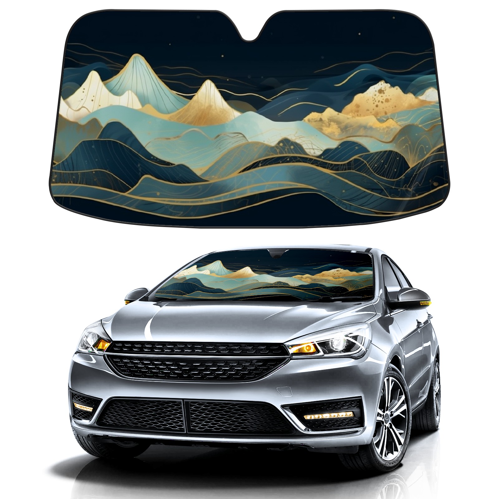 <b>ZXIVGOQFR Foldable Premium Car Windshield Sunshade is your great solution to reduce your car’s interior temperature dramatically! This is definitely a must-have item for your summer travel! </b> <br> ●<b>Size: 63"L x 33.5"W </b> <br></b> ●<b>Blocking Uv Rays & Heat Insulation<br></b> Our vehicle sunshade provides effective UV, sun, and summer heat protection .Maintains dashboards by preventing fading and cracking <br> ●<b>Easy-To-Store Folding Design Makes Storage Convenient <br></b> ZXIVGOQFR car sunshades come with removable suction cups and elastic bands that you can install easily and quickly, and the removable suction cups will not leave any marks on your windows when removed. Within seconds, windshield visor can be installed and removed. When not in use,the front windshield can be easily and effectively placed on the door pocket or the dashboard, which is beautiful and does not take up space in the car.<br> <br> <b>PUT UP A 'PROTECTIVE UMBRELLA' FOR YOUR BELOVED CAR!</b>