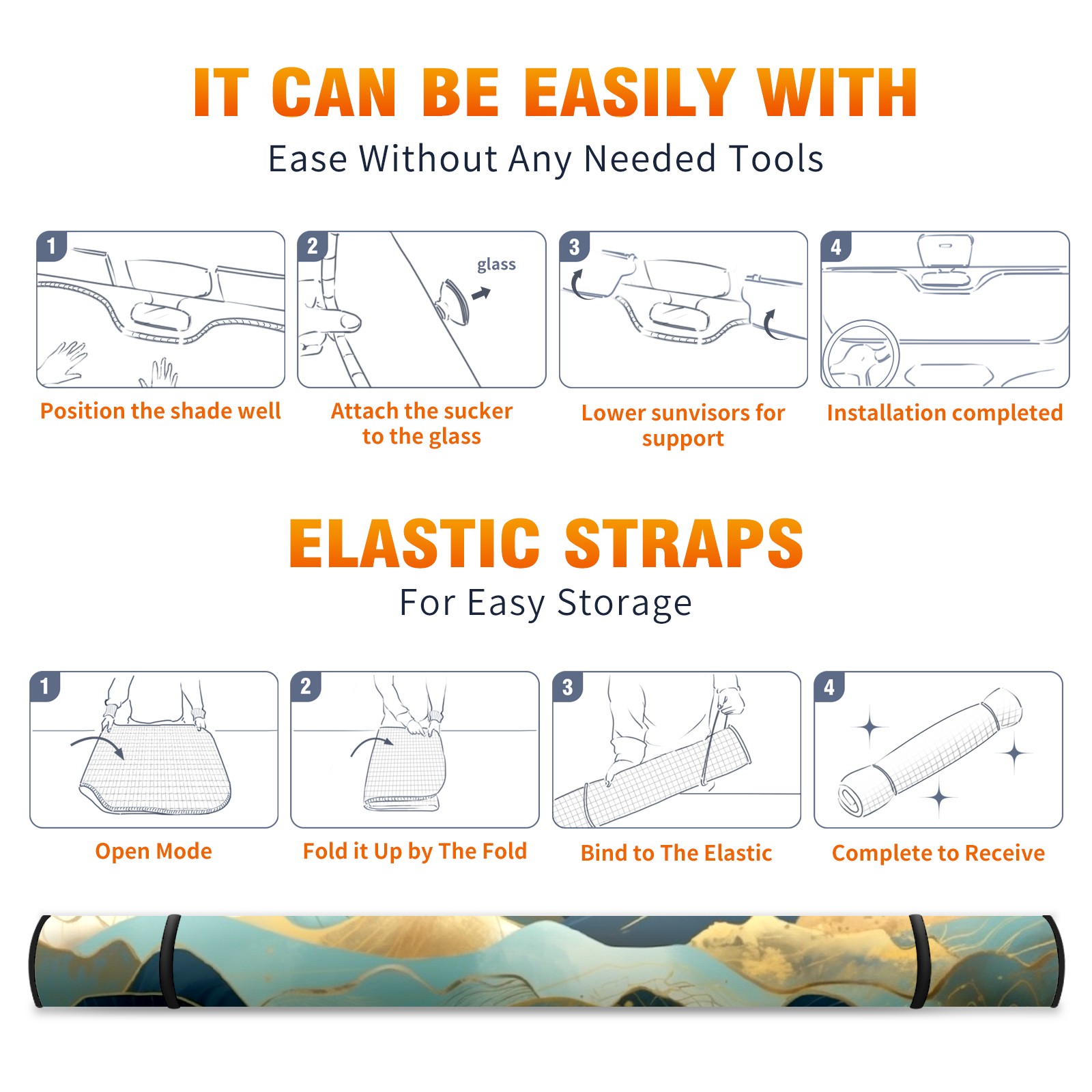 • <b>ZXIVGOQFR Foldable Premium Car Windshield Sunshade is your great solution to reduce your car’s interior temperature dramatically! This is definitely a must-have item for your summer travel! </b> <br> ●<b>Size: 63"L x 33.5"W </b> <br></b> ●<b>Blocking Uv Rays & Heat Insulation<br></b> Our vehicle sunshade provides effective UV, sun, and summer heat protection .Maintains dashboards by preventing fading and cracking <br> ●<b>Easy-To-Store Folding Design Makes Storage Convenient <br></b> ZXIVGOQFR car sunshades come with removable suction cups and elastic bands that you can install easily and quickly, and the removable suction cups will not leave any marks on your windows when removed. Within seconds, windshield visor can be installed and removed. When not in use,the front windshield can be easily and effectively placed on the door pocket or the dashboard, which is beautiful and does not take up space in the car.<br> <br> <b>PUT UP A 'PROTECTIVE UMBRELLA' FOR YOUR BELOVED CAR!</b>