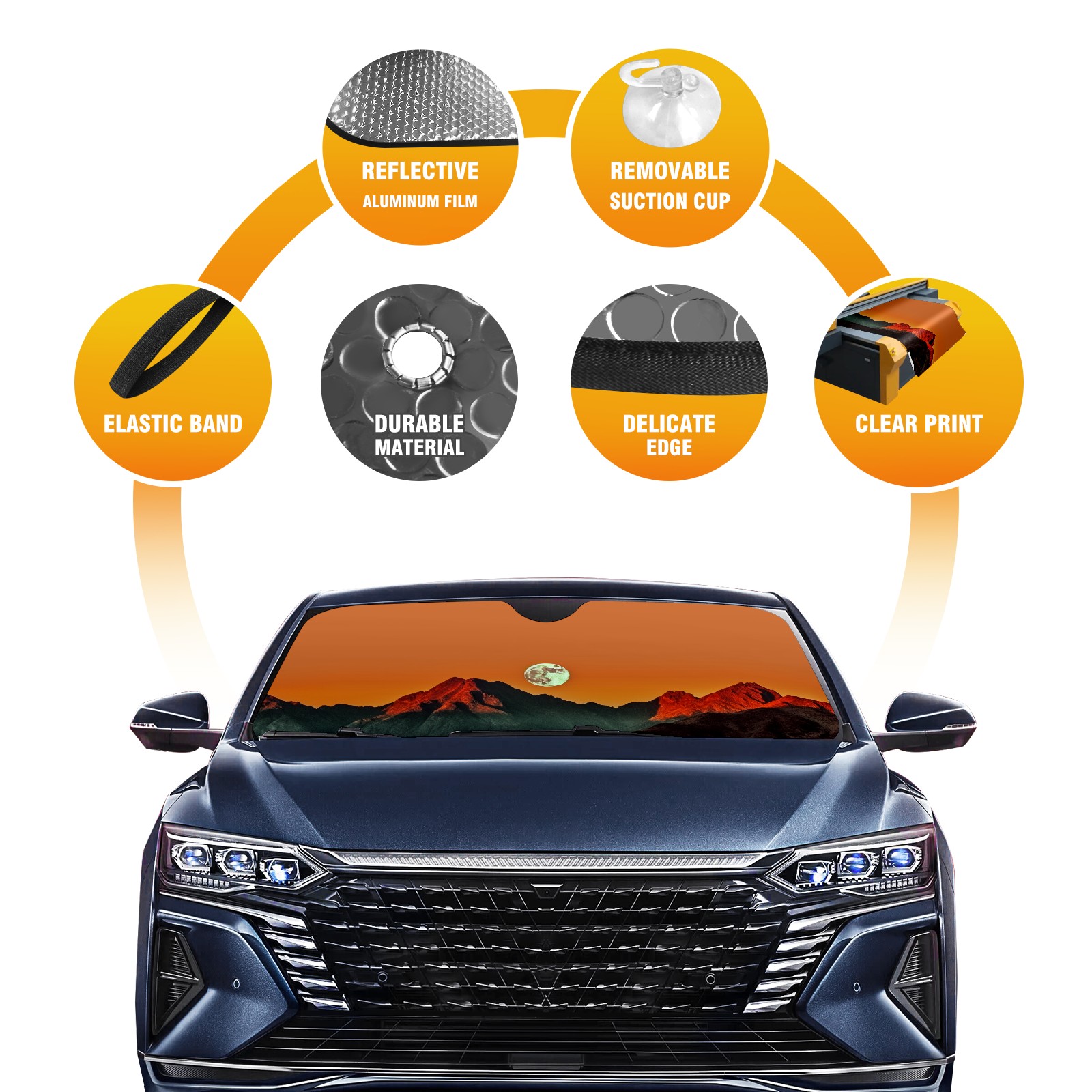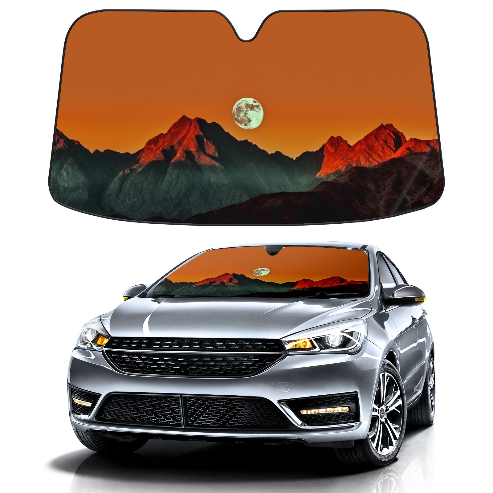 Car Windshield Sun Shade for Front Window Moon Over Mountains (1) Foldable Vehicle Windshield Car Sun Visor Covers Automotive Window Protector Car Privacy Sun Blocker