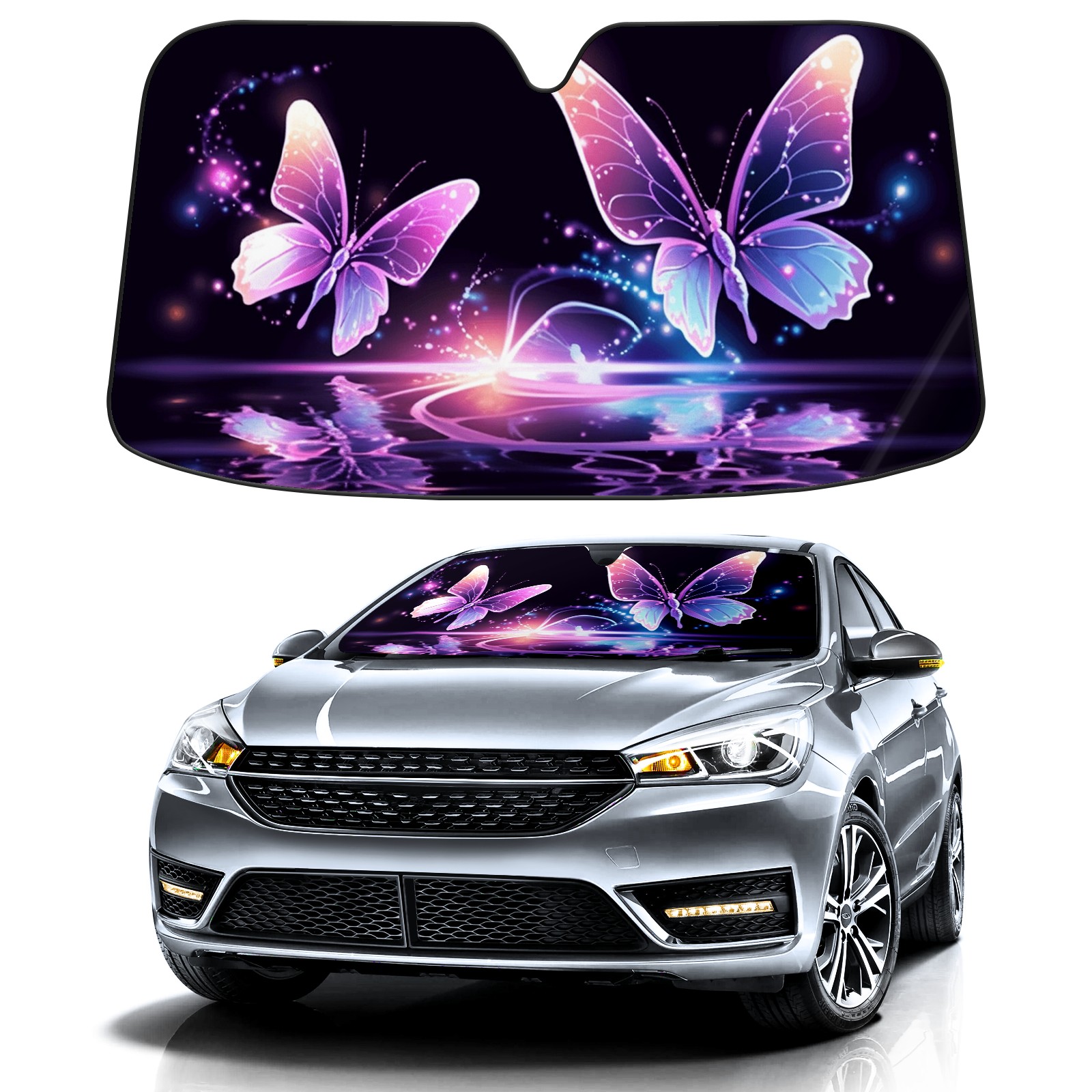 Car Windshield Sun Shade for Front Window Colorful Butterflies (6) Foldable Vehicle Windshield Car Sun Visor Covers Automotive Window Protector Car Privacy Sun Blocker