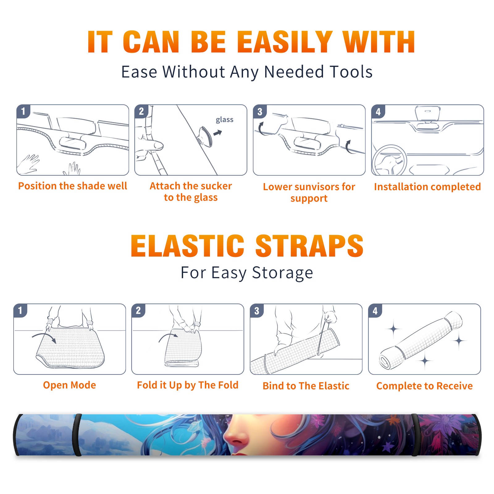 <b>ZXIVGOQFR Foldable Premium Car Windshield Sunshade is your great solution to reduce your car’s interior temperature dramatically! This is definitely a must-have item for your summer travel! </b> <br> ●<b>Size: 63"L x 33.5"W </b> <br></b> ●<b>Blocking Uv Rays & Heat Insulation<br></b> Our vehicle sunshade provides effective UV, sun, and summer heat protection .Maintains dashboards by preventing fading and cracking <br> ●<b>Easy-To-Store Folding Design Makes Storage Convenient <br></b> ZXIVGOQFR car sunshades come with removable suction cups and elastic bands that you can install easily and quickly, and the removable suction cups will not leave any marks on your windows when removed. Within seconds, windshield visor can be installed and removed. When not in use,the front windshield can be easily and effectively placed on the door pocket or the dashboard, which is beautiful and does not take up space in the car.<br> <br> <b>PUT UP A 'PROTECTIVE UMBRELLA' FOR YOUR BELOVED CAR!</b>