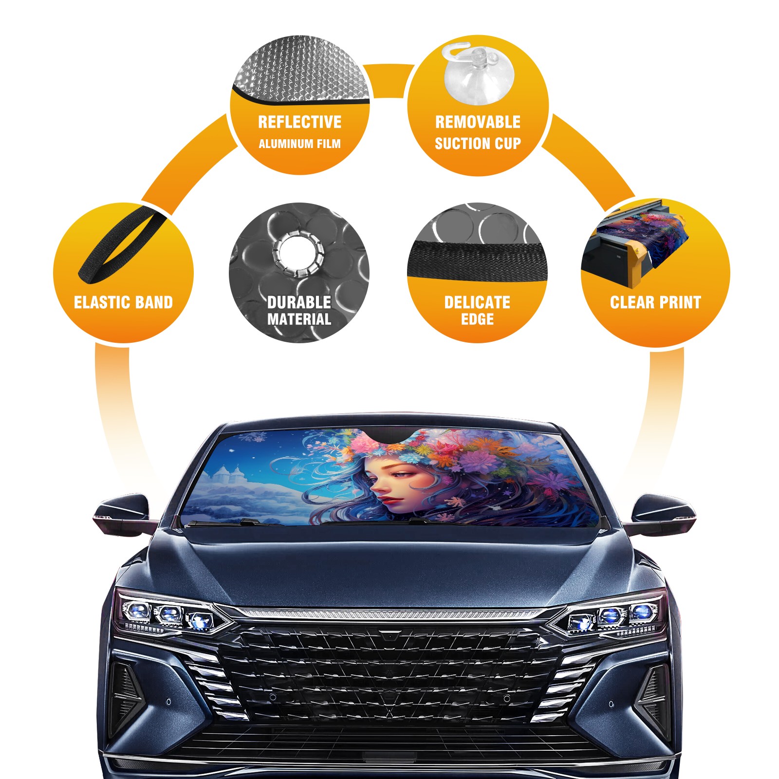 Car Windshield Sun Shade for Front Window Flower Beauty Foldable Vehicle Windshield Car Sun Visor Covers Automotive Window Protector Car Privacy Sun Blocker