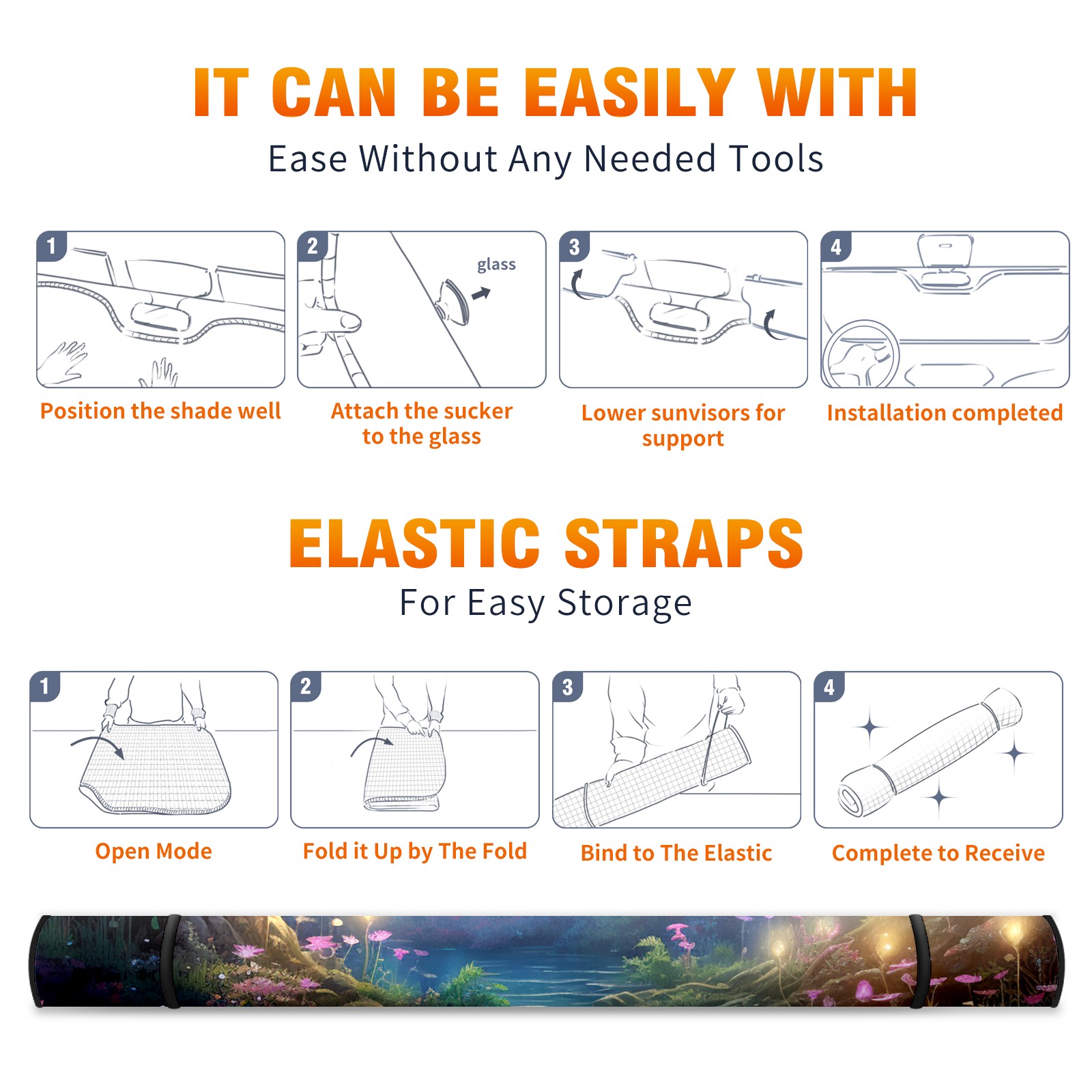 • <b>ZXIVGOQFR Foldable Premium Car Windshield Sunshade is your great solution to reduce your car’s interior temperature dramatically! This is definitely a must-have item for your summer travel! </b> <br> ●<b>Size: 63"L x 33.5"W </b> <br></b> ●<b>Blocking Uv Rays & Heat Insulation<br></b> Our vehicle sunshade provides effective UV, sun, and summer heat protection .Maintains dashboards by preventing fading and cracking <br> ●<b>Easy-To-Store Folding Design Makes Storage Convenient <br></b> ZXIVGOQFR car sunshades come with removable suction cups and elastic bands that you can install easily and quickly, and the removable suction cups will not leave any marks on your windows when removed. Within seconds, windshield visor can be installed and removed. When not in use,the front windshield can be easily and effectively placed on the door pocket or the dashboard, which is beautiful and does not take up space in the car.<br> <br> <b>PUT UP A 'PROTECTIVE UMBRELLA' FOR YOUR BELOVED CAR!</b>