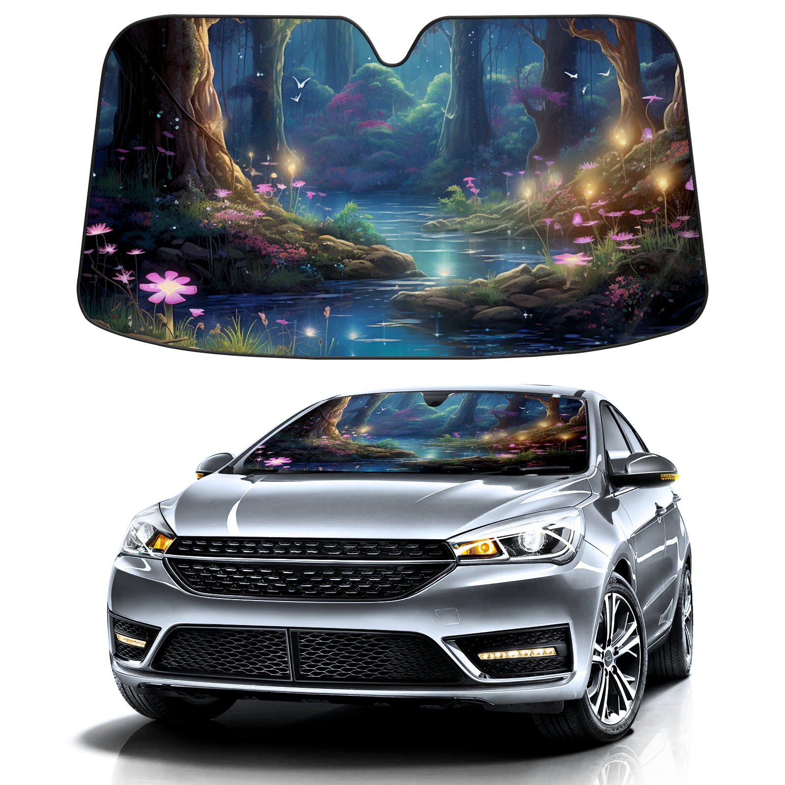 Car Windshield Sun Shade for Front Window Wonderland Foldable Vehicle Windshield Car Sun Visor Covers Automotive Window Protector Car Privacy Sun Blocker
