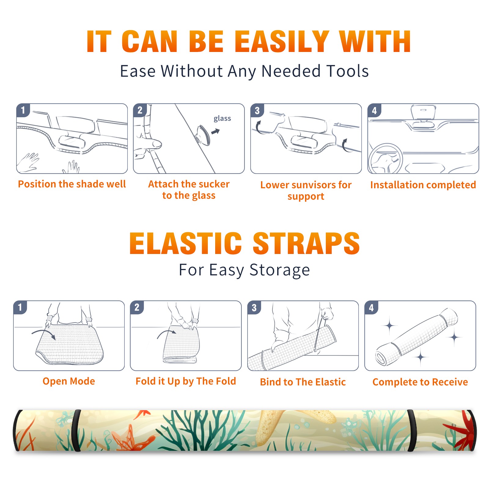 <b>ZXIVGOQFR Foldable Premium Car Windshield Sunshade is your great solution to reduce your car’s interior temperature dramatically! This is definitely a must-have item for your summer travel! </b> <br> ●<b>Size: 63"L x 33.5"W </b> <br></b> ●<b>Blocking Uv Rays & Heat Insulation<br></b> Our vehicle sunshade provides effective UV, sun, and summer heat protection .Maintains dashboards by preventing fading and cracking <br> ●<b>Easy-To-Store Folding Design Makes Storage Convenient <br></b> ZXIVGOQFR car sunshades come with removable suction cups and elastic bands that you can install easily and quickly, and the removable suction cups will not leave any marks on your windows when removed. Within seconds, windshield visor can be installed and removed. When not in use,the front windshield can be easily and effectively placed on the door pocket or the dashboard, which is beautiful and does not take up space in the car.<br> <br> <b>PUT UP A 'PROTECTIVE UMBRELLA' FOR YOUR BELOVED CAR!</b>