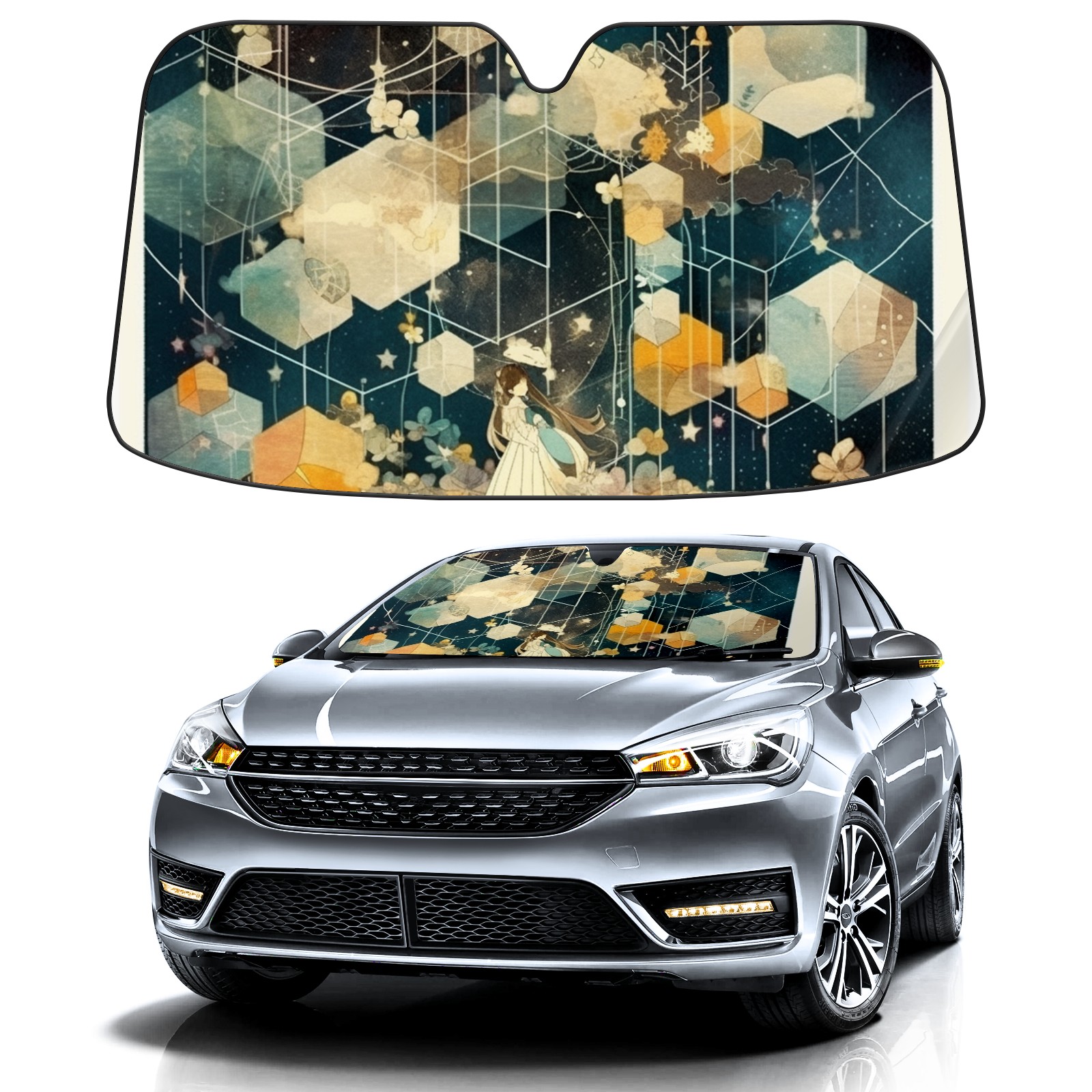 Car Windshield Sun Shade for Front Window Geometry Foldable Vehicle Windshield Car Sun Visor Covers Automotive Window Protector Car Privacy Sun Blocker
