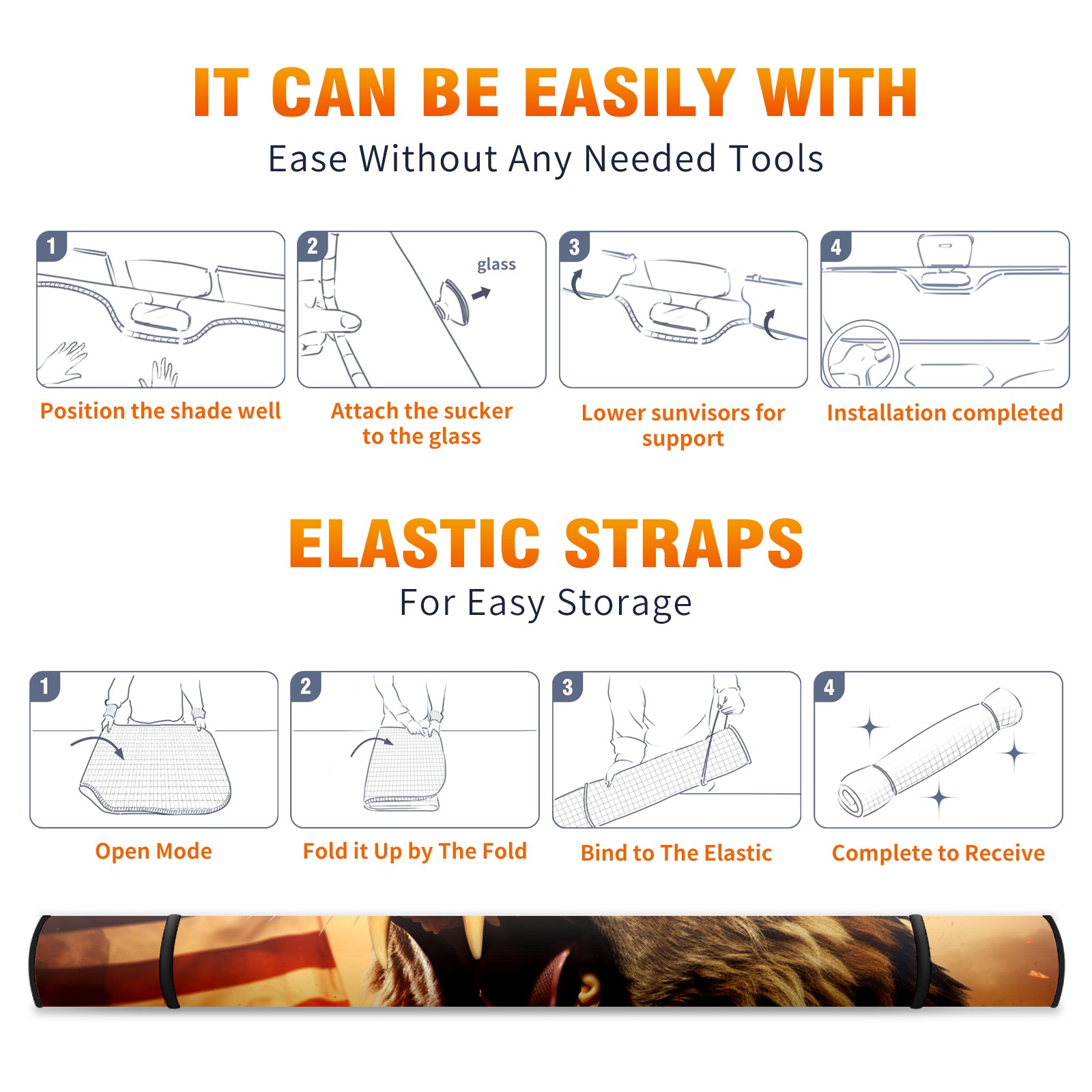 • <b>ZXIVGOQFR Foldable Premium Car Windshield Sunshade is your great solution to reduce your car’s interior temperature dramatically! This is definitely a must-have item for your summer travel! </b> <br> ●<b>Size: 63"L x 33.5"W </b> <br></b> ●<b>Blocking Uv Rays & Heat Insulation<br></b> Our vehicle sunshade provides effective UV, sun, and summer heat protection .Maintains dashboards by preventing fading and cracking <br> ●<b>Easy-To-Store Folding Design Makes Storage Convenient <br></b> ZXIVGOQFR car sunshades come with removable suction cups and elastic bands that you can install easily and quickly, and the removable suction cups will not leave any marks on your windows when removed. Within seconds, windshield visor can be installed and removed. When not in use,the front windshield can be easily and effectively placed on the door pocket or the dashboard, which is beautiful and does not take up space in the car.<br> <br> <b>PUT UP A 'PROTECTIVE UMBRELLA' FOR YOUR BELOVED CAR!</b>