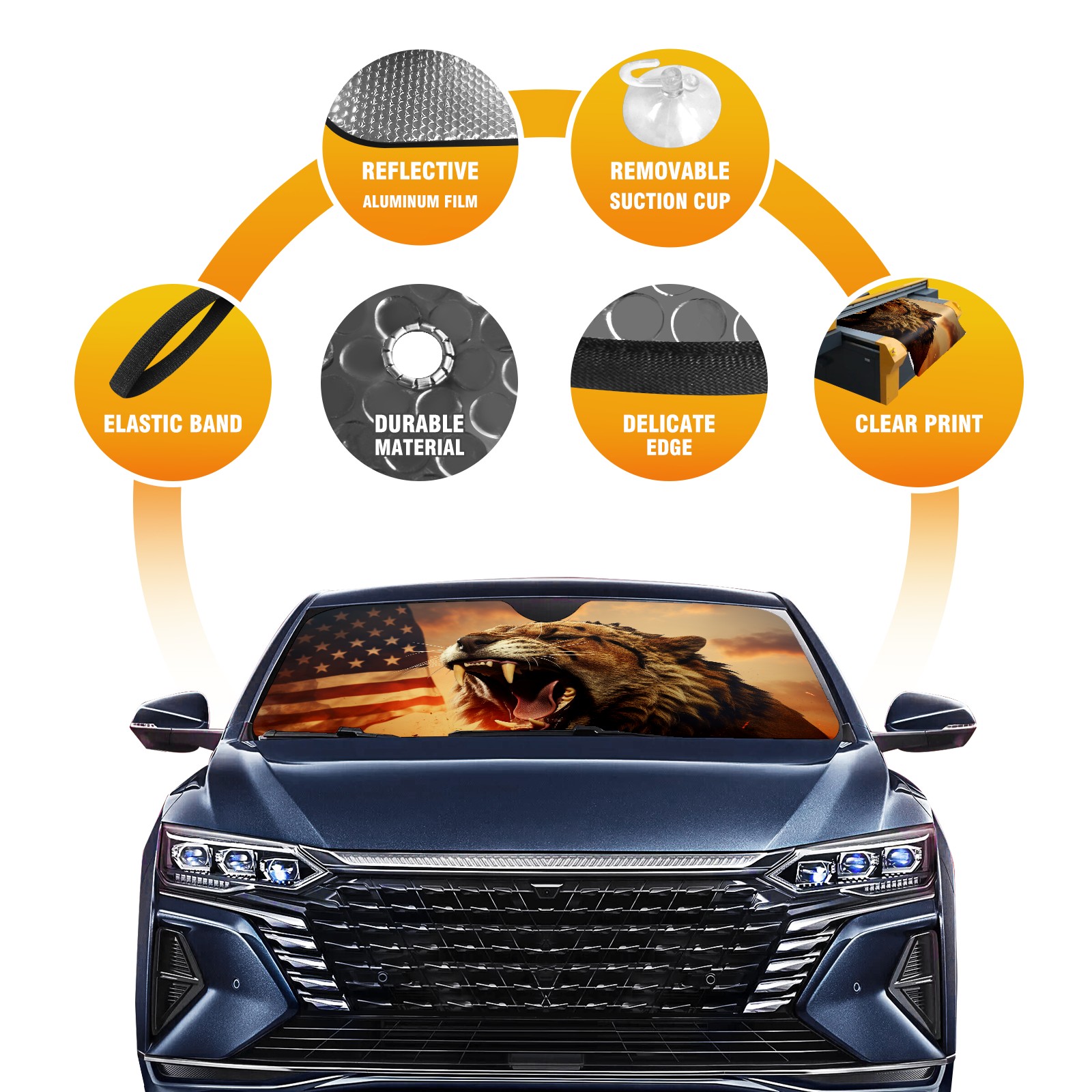 <b>ZXIVGOQFR Foldable Premium Car Windshield Sunshade is your great solution to reduce your car’s interior temperature dramatically! This is definitely a must-have item for your summer travel! </b> <br> ●<b>Size: 63"L x 33.5"W </b> <br></b> ●<b>Blocking Uv Rays & Heat Insulation<br></b> Our vehicle sunshade provides effective UV, sun, and summer heat protection .Maintains dashboards by preventing fading and cracking <br> ●<b>Easy-To-Store Folding Design Makes Storage Convenient <br></b> ZXIVGOQFR car sunshades come with removable suction cups and elastic bands that you can install easily and quickly, and the removable suction cups will not leave any marks on your windows when removed. Within seconds, windshield visor can be installed and removed. When not in use,the front windshield can be easily and effectively placed on the door pocket or the dashboard, which is beautiful and does not take up space in the car.<br> <br> <b>PUT UP A 'PROTECTIVE UMBRELLA' FOR YOUR BELOVED CAR!</b>