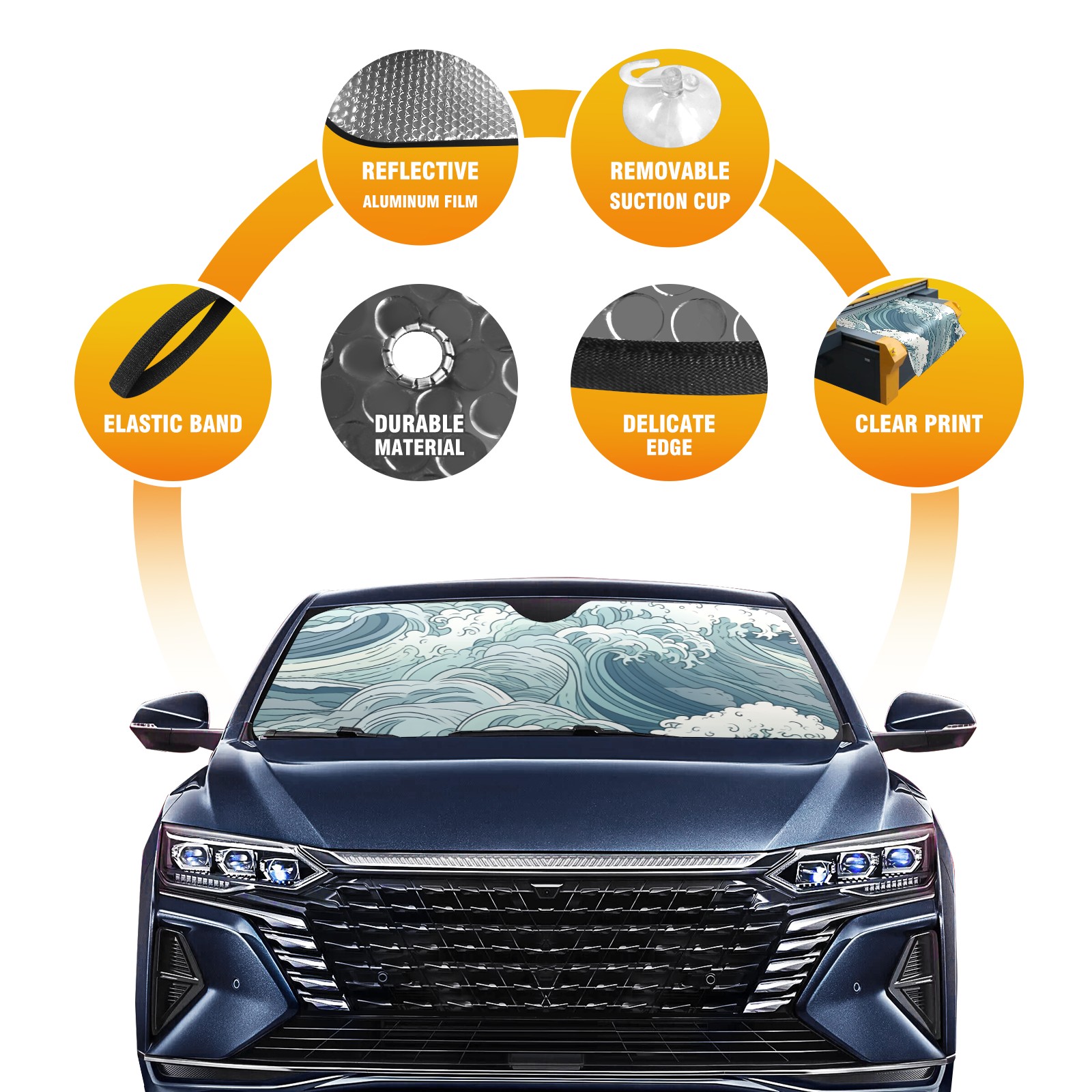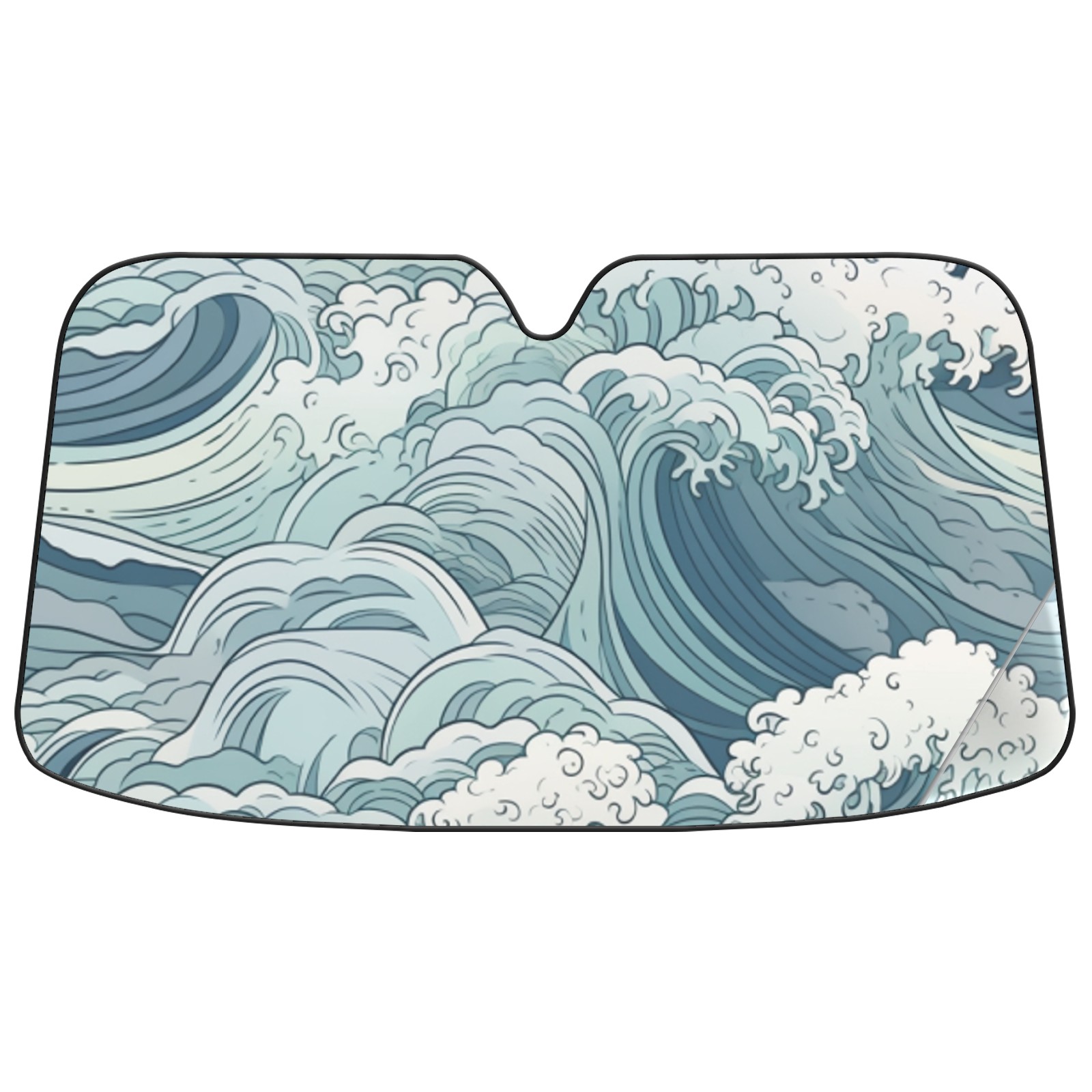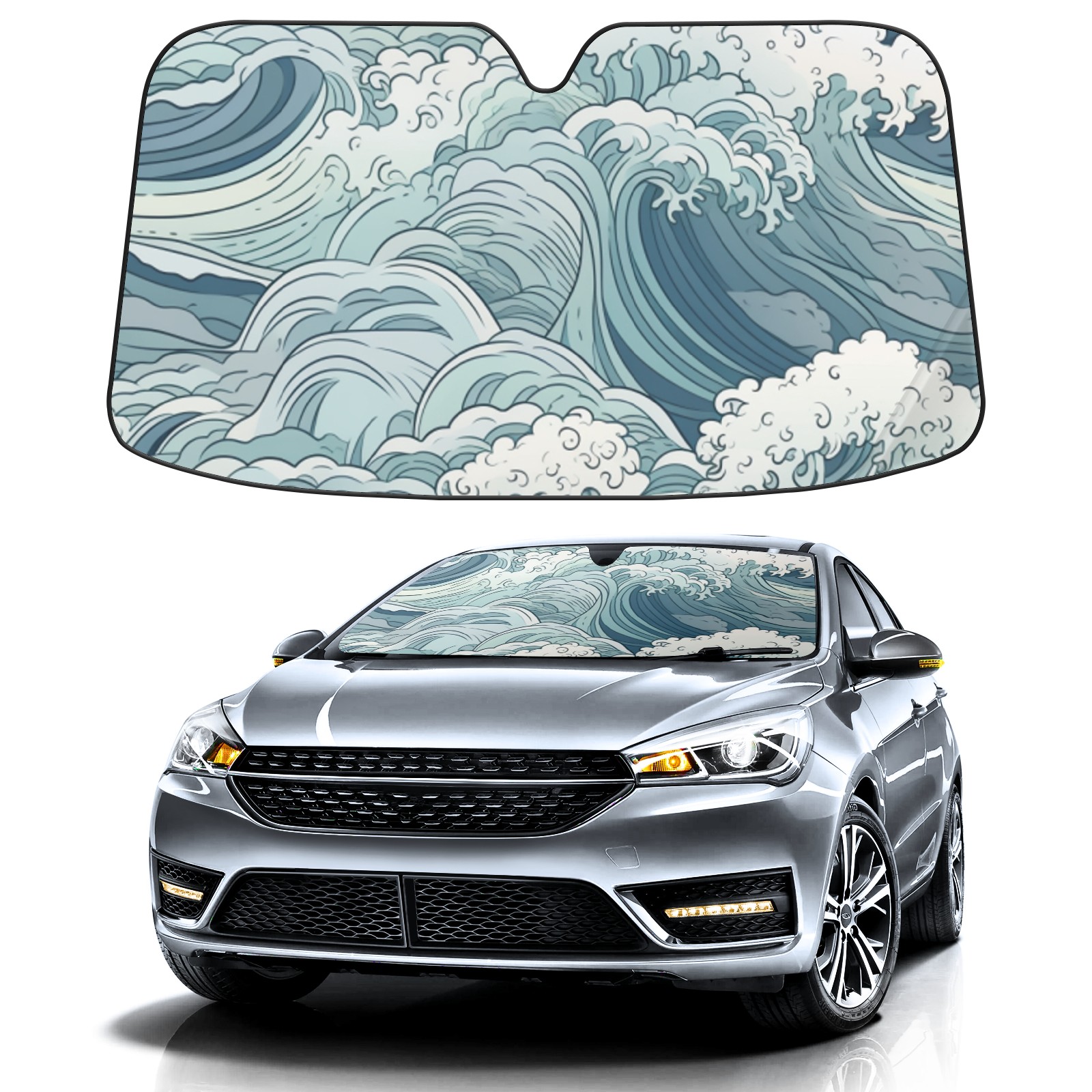 Car Windshield Sun Shade for Front Window Sea Wave (39) Foldable Vehicle Windshield Car Sun Visor Covers Automotive Window Protector Car Privacy Sun Blocker