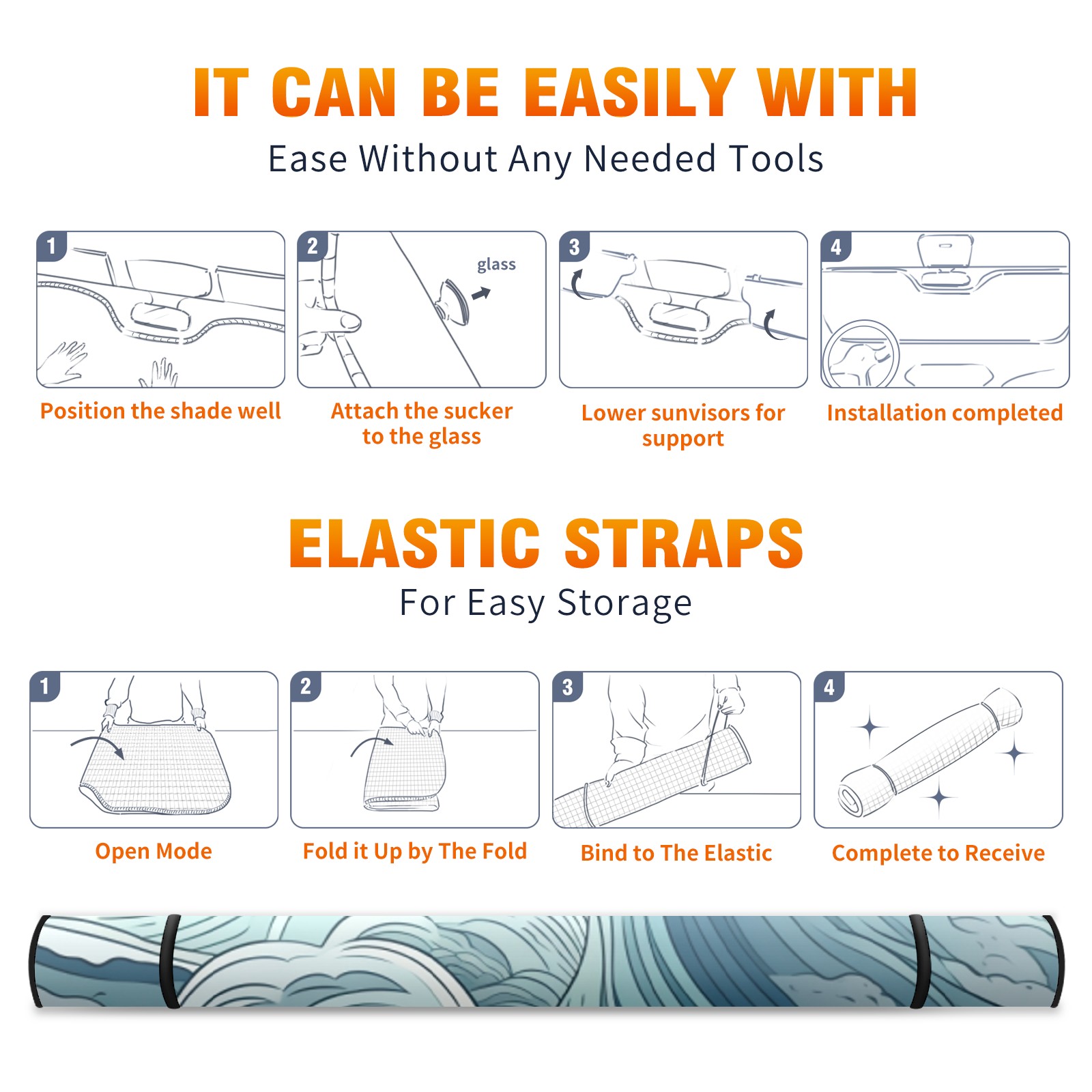 <b>ZXIVGOQFR Foldable Premium Car Windshield Sunshade is your great solution to reduce your car’s interior temperature dramatically! This is definitely a must-have item for your summer travel! </b> <br> ●<b>Size: 63"L x 33.5"W </b> <br></b> ●<b>Blocking Uv Rays & Heat Insulation<br></b> Our vehicle sunshade provides effective UV, sun, and summer heat protection .Maintains dashboards by preventing fading and cracking <br> ●<b>Easy-To-Store Folding Design Makes Storage Convenient <br></b> ZXIVGOQFR car sunshades come with removable suction cups and elastic bands that you can install easily and quickly, and the removable suction cups will not leave any marks on your windows when removed. Within seconds, windshield visor can be installed and removed. When not in use,the front windshield can be easily and effectively placed on the door pocket or the dashboard, which is beautiful and does not take up space in the car.<br> <br> <b>PUT UP A 'PROTECTIVE UMBRELLA' FOR YOUR BELOVED CAR!</b>