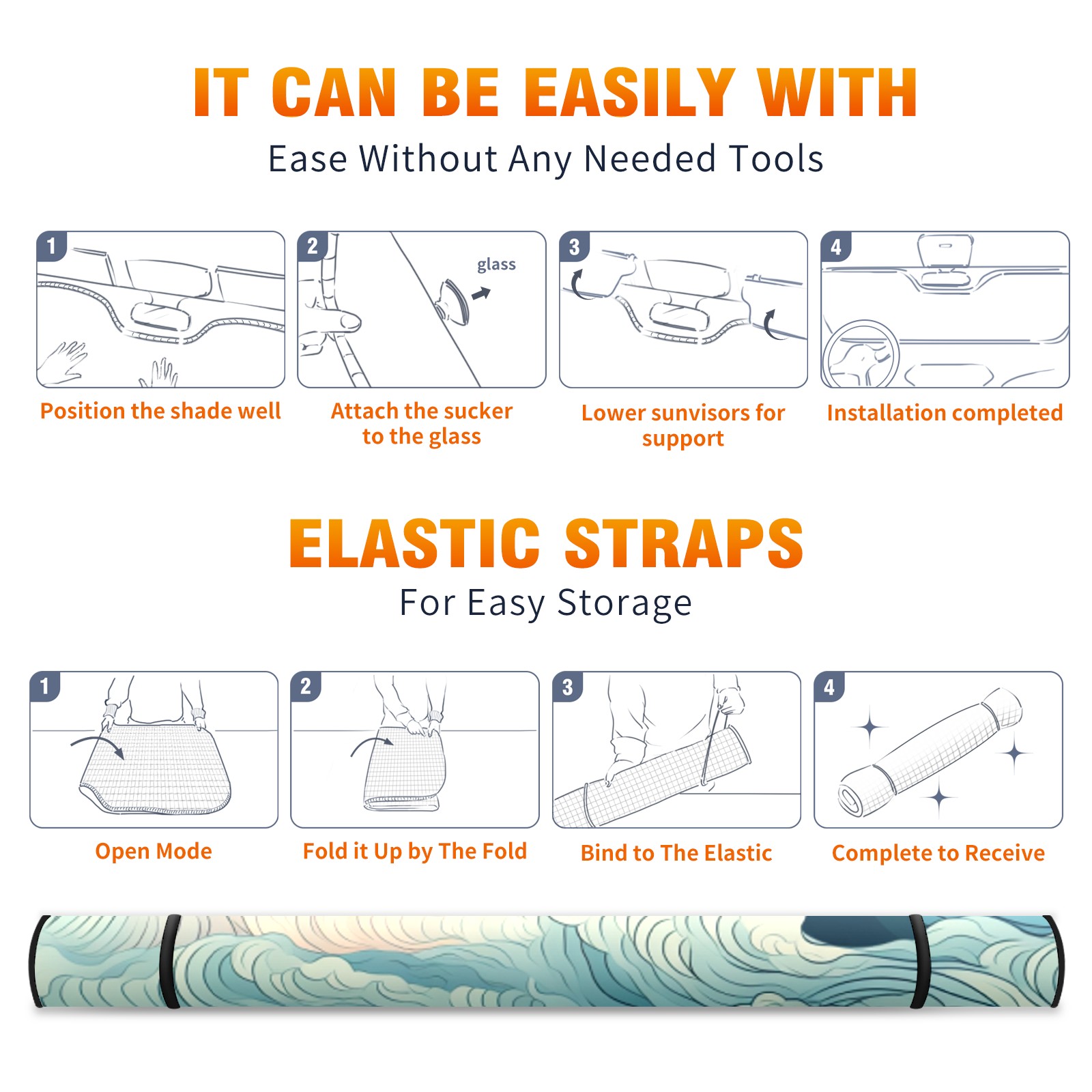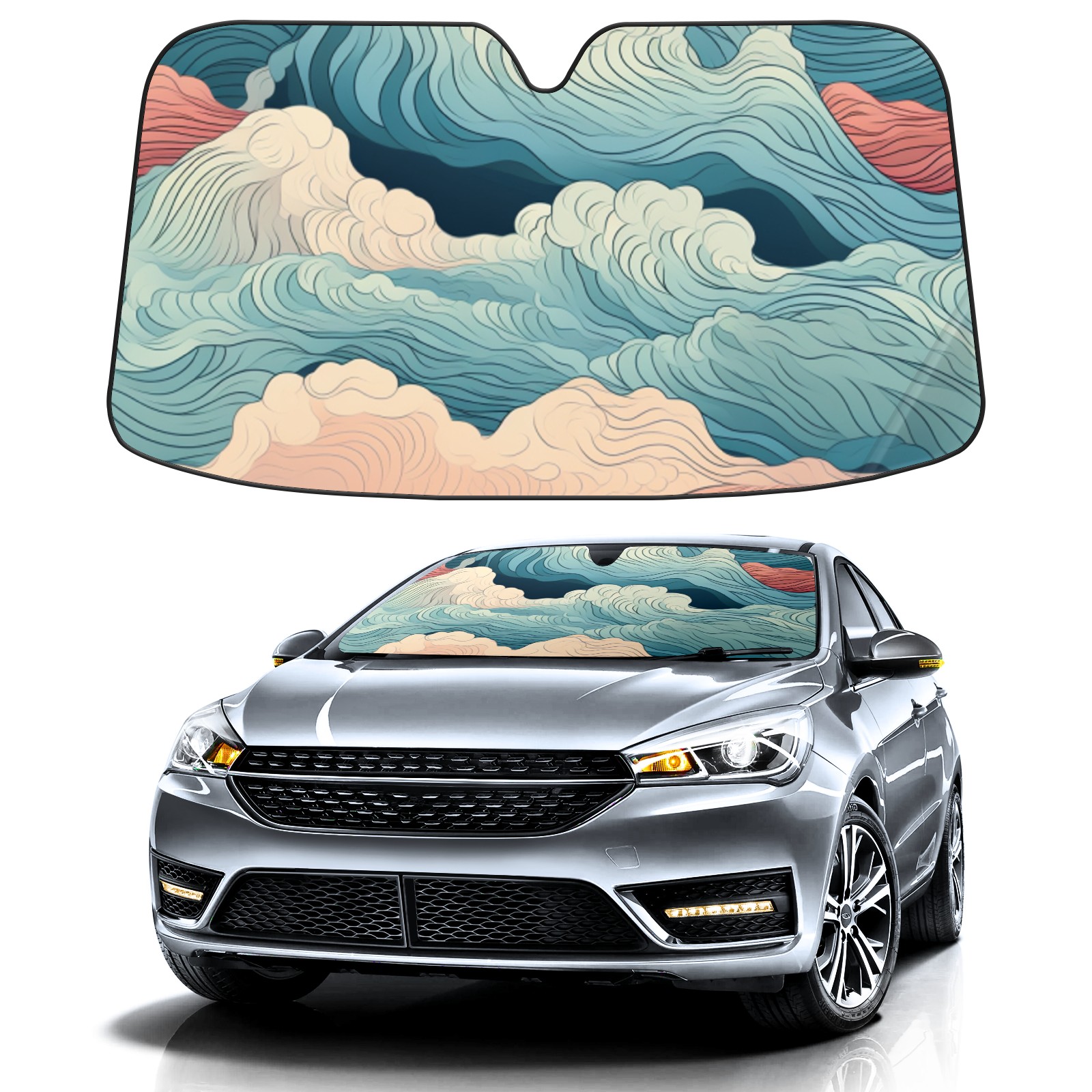 Car Windshield Sun Shade for Front Window Sea Wave (38) Foldable Vehicle Windshield Car Sun Visor Covers Automotive Window Protector Car Privacy Sun Blocker