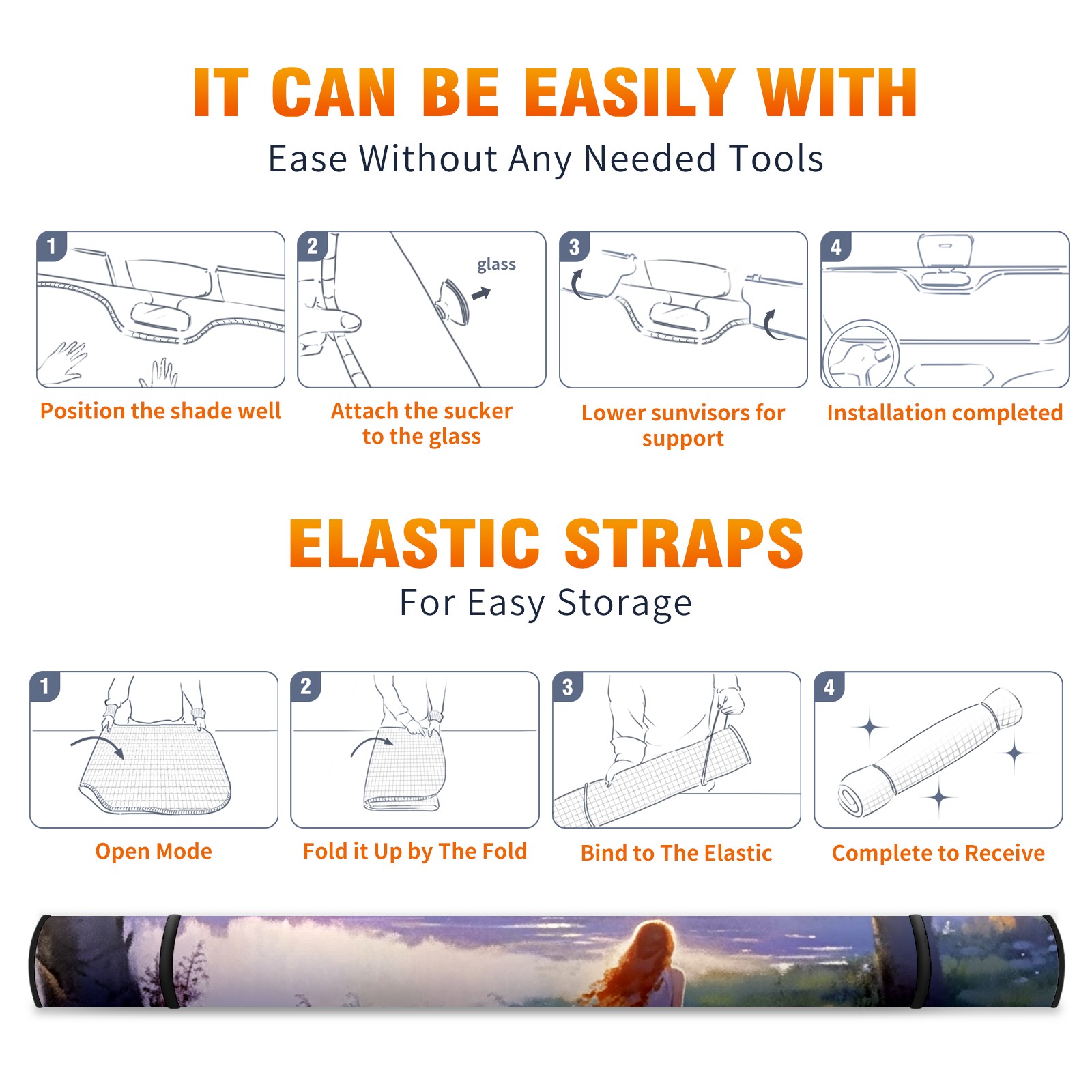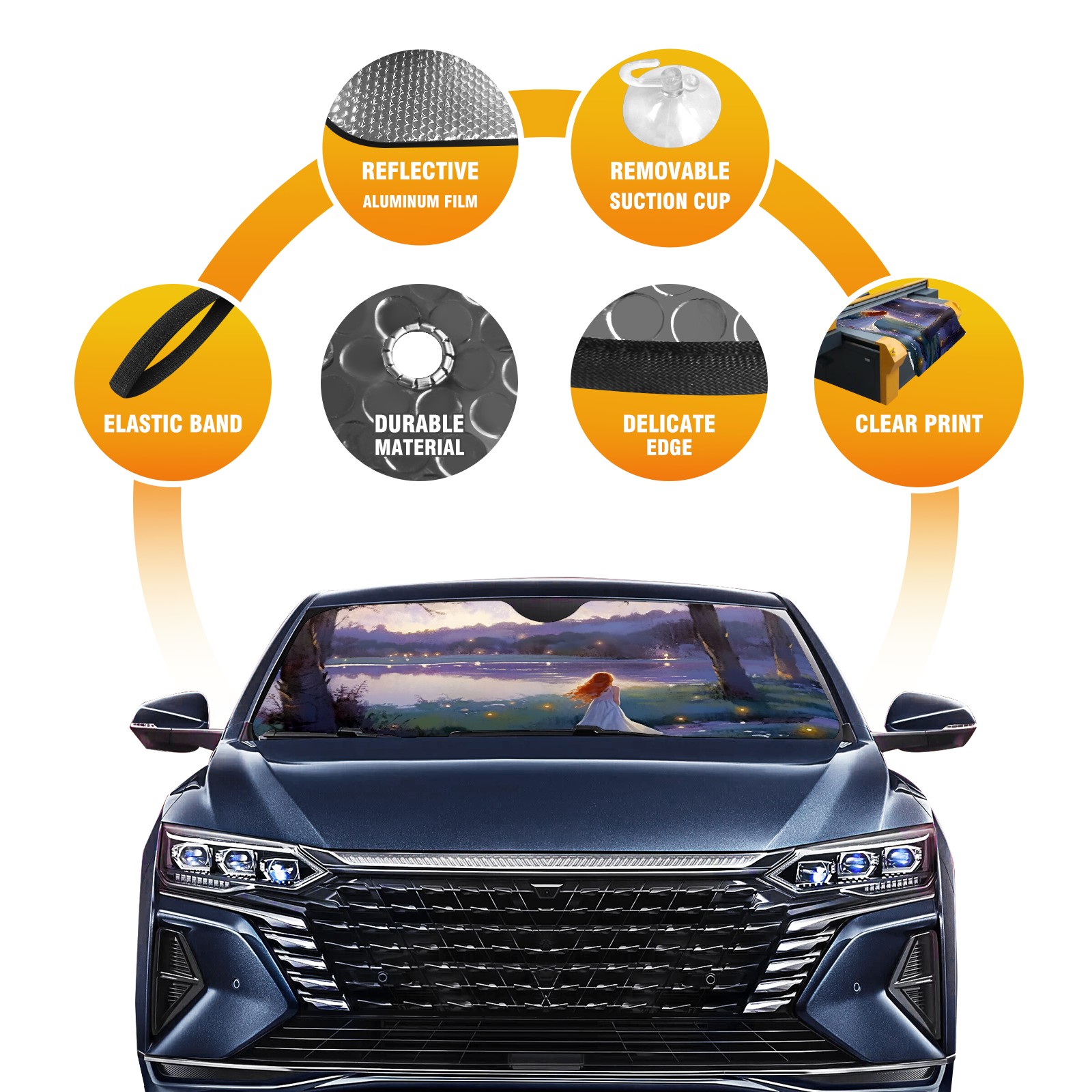 • <b>ZXIVGOQFR Foldable Premium Car Windshield Sunshade is your great solution to reduce your car’s interior temperature dramatically! This is definitely a must-have item for your summer travel! </b> <br> ●<b>Size: 63"L x 33.5"W </b> <br></b> ●<b>Blocking Uv Rays & Heat Insulation<br></b> Our vehicle sunshade provides effective UV, sun, and summer heat protection .Maintains dashboards by preventing fading and cracking <br> ●<b>Easy-To-Store Folding Design Makes Storage Convenient <br></b> ZXIVGOQFR car sunshades come with removable suction cups and elastic bands that you can install easily and quickly, and the removable suction cups will not leave any marks on your windows when removed. Within seconds, windshield visor can be installed and removed. When not in use,the front windshield can be easily and effectively placed on the door pocket or the dashboard, which is beautiful and does not take up space in the car.<br> <br> <b>PUT UP A 'PROTECTIVE UMBRELLA' FOR YOUR BELOVED CAR!</b>