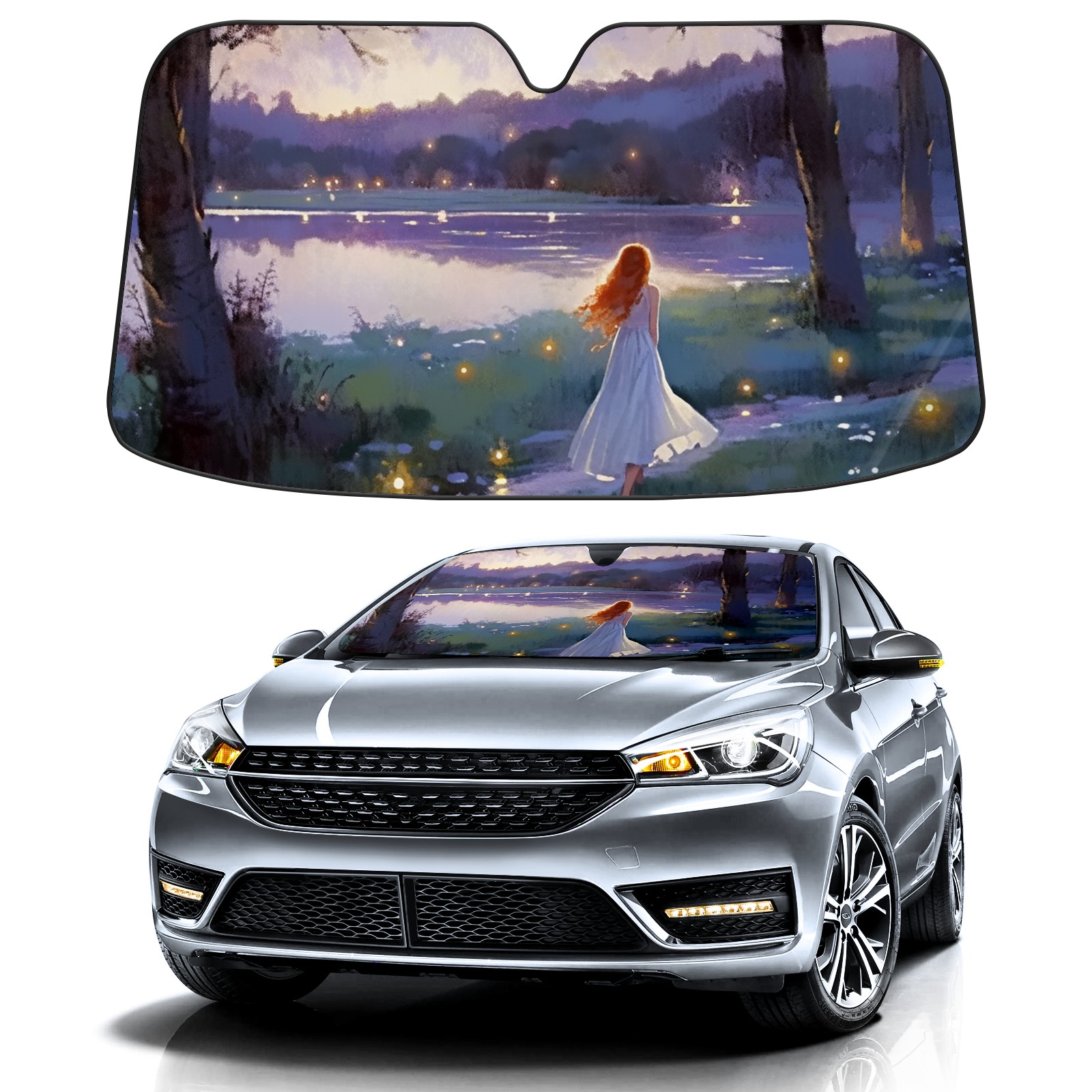 Car Windshield Sun Shade for Front Window Lakeside Foldable Vehicle Windshield Car Sun Visor Covers Automotive Window Protector Car Privacy Sun Blocker