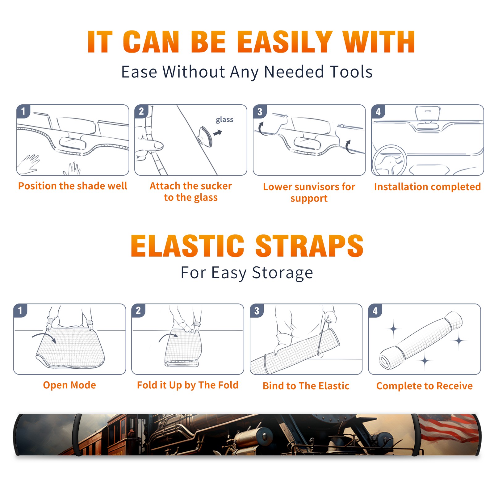 <b>ZXIVGOQFR Foldable Premium Car Windshield Sunshade is your great solution to reduce your car’s interior temperature dramatically! This is definitely a must-have item for your summer travel! </b> <br> ●<b>Size: 63"L x 33.5"W </b> <br></b> ●<b>Blocking Uv Rays & Heat Insulation<br></b> Our vehicle sunshade provides effective UV, sun, and summer heat protection .Maintains dashboards by preventing fading and cracking <br> ●<b>Easy-To-Store Folding Design Makes Storage Convenient <br></b> ZXIVGOQFR car sunshades come with removable suction cups and elastic bands that you can install easily and quickly, and the removable suction cups will not leave any marks on your windows when removed. Within seconds, windshield visor can be installed and removed. When not in use,the front windshield can be easily and effectively placed on the door pocket or the dashboard, which is beautiful and does not take up space in the car.<br> <br> <b>PUT UP A 'PROTECTIVE UMBRELLA' FOR YOUR BELOVED CAR!</b>