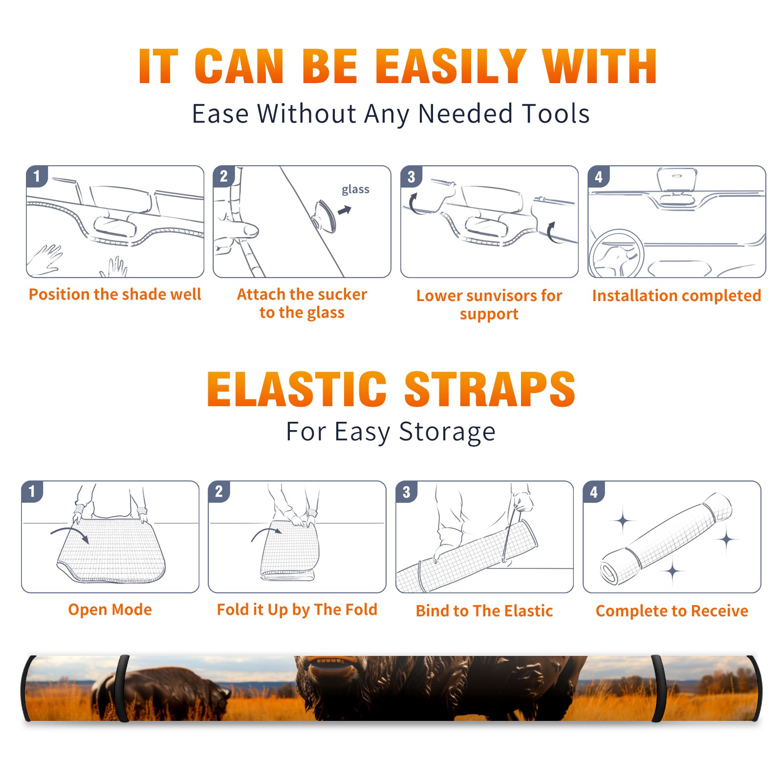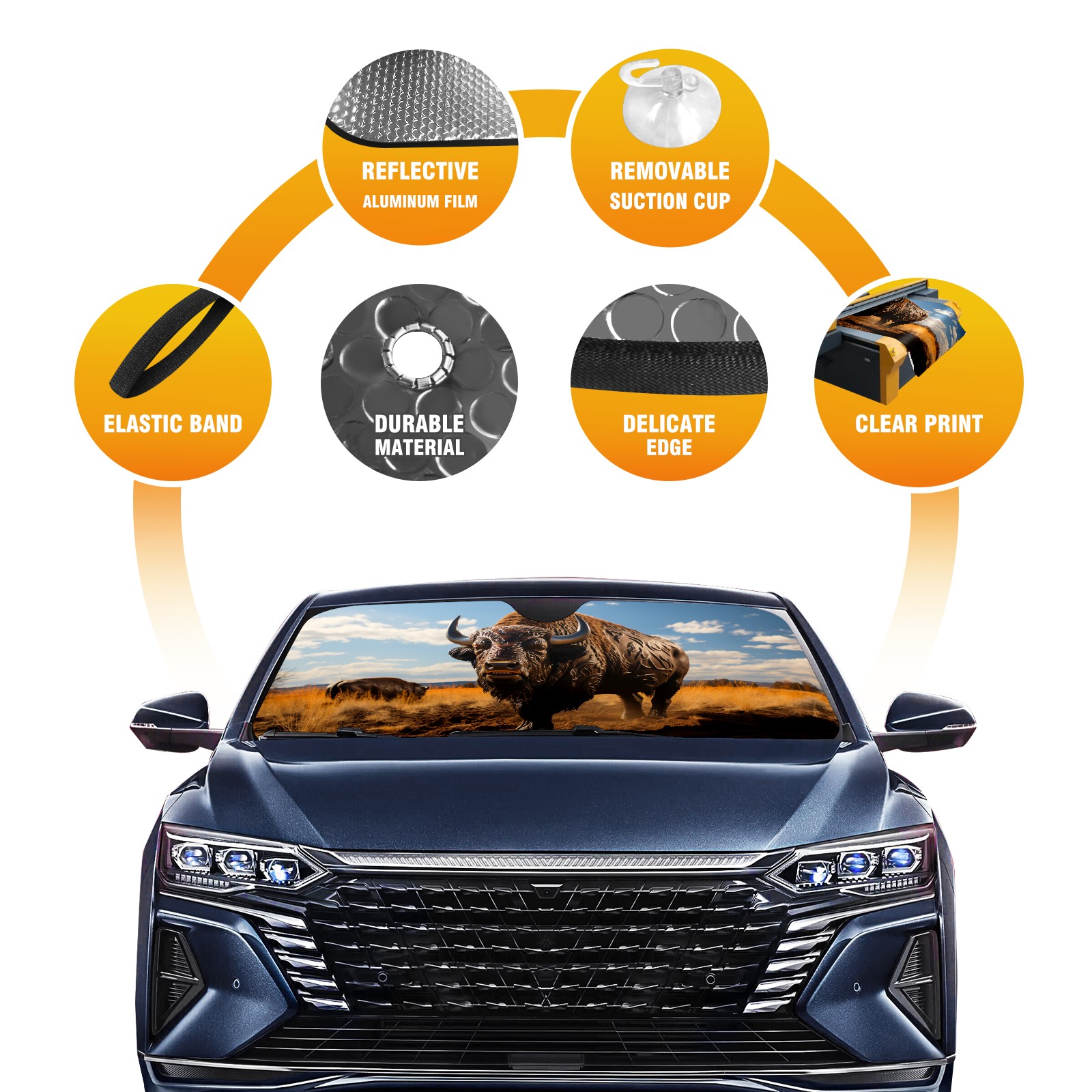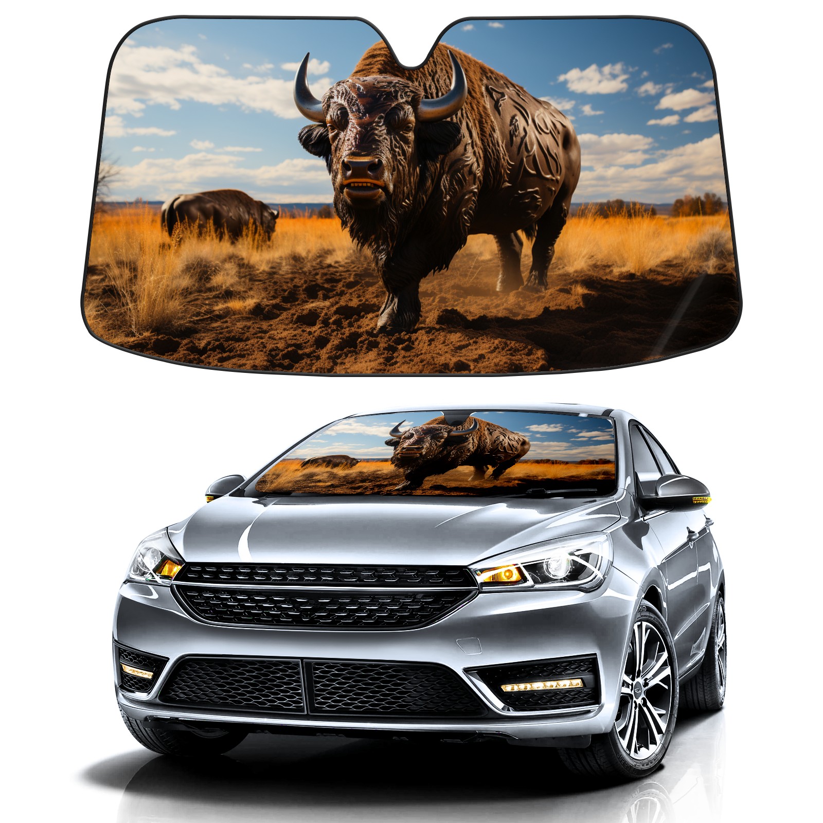 Car Windshield Sun Shade for Front Window Buffalo Foldable Vehicle Windshield Car Sun Visor Covers Automotive Window Protector Car Privacy Sun Blocker