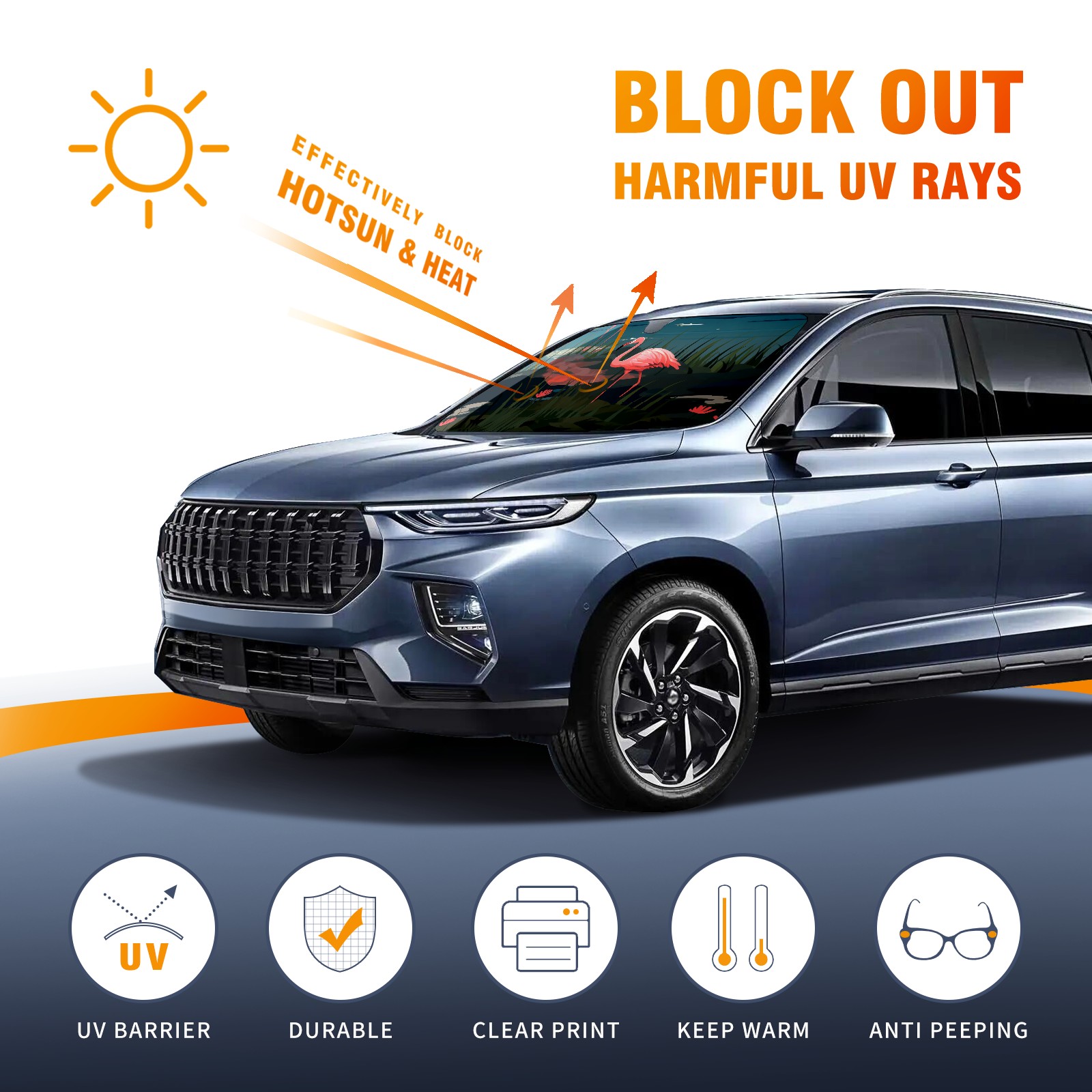 <b>ZXIVGOQFR Foldable Premium Car Windshield Sunshade is your great solution to reduce your car’s interior temperature dramatically! This is definitely a must-have item for your summer travel! </b> <br> ●<b>Size: 63"L x 33.5"W </b> <br></b> ●<b>Blocking Uv Rays & Heat Insulation<br></b> Our vehicle sunshade provides effective UV, sun, and summer heat protection .Maintains dashboards by preventing fading and cracking <br> ●<b>Easy-To-Store Folding Design Makes Storage Convenient <br></b> ZXIVGOQFR car sunshades come with removable suction cups and elastic bands that you can install easily and quickly, and the removable suction cups will not leave any marks on your windows when removed. Within seconds, windshield visor can be installed and removed. When not in use,the front windshield can be easily and effectively placed on the door pocket or the dashboard, which is beautiful and does not take up space in the car.<br> <br> <b>PUT UP A 'PROTECTIVE UMBRELLA' FOR YOUR BELOVED CAR!</b>