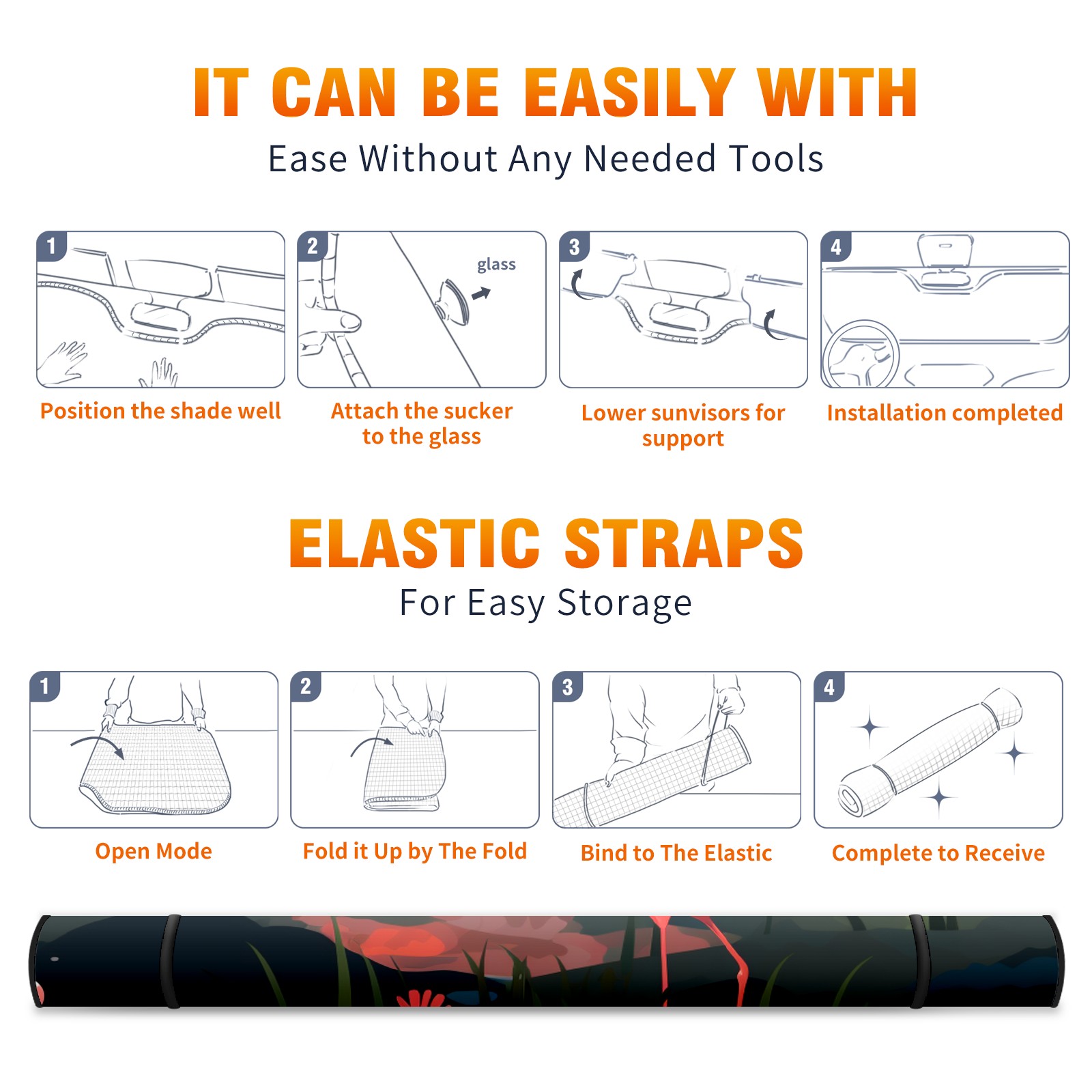 • <b>ZXIVGOQFR Foldable Premium Car Windshield Sunshade is your great solution to reduce your car’s interior temperature dramatically! This is definitely a must-have item for your summer travel! </b> <br> ●<b>Size: 63"L x 33.5"W </b> <br></b> ●<b>Blocking Uv Rays & Heat Insulation<br></b> Our vehicle sunshade provides effective UV, sun, and summer heat protection .Maintains dashboards by preventing fading and cracking <br> ●<b>Easy-To-Store Folding Design Makes Storage Convenient <br></b> ZXIVGOQFR car sunshades come with removable suction cups and elastic bands that you can install easily and quickly, and the removable suction cups will not leave any marks on your windows when removed. Within seconds, windshield visor can be installed and removed. When not in use,the front windshield can be easily and effectively placed on the door pocket or the dashboard, which is beautiful and does not take up space in the car.<br> <br> <b>PUT UP A 'PROTECTIVE UMBRELLA' FOR YOUR BELOVED CAR!</b>