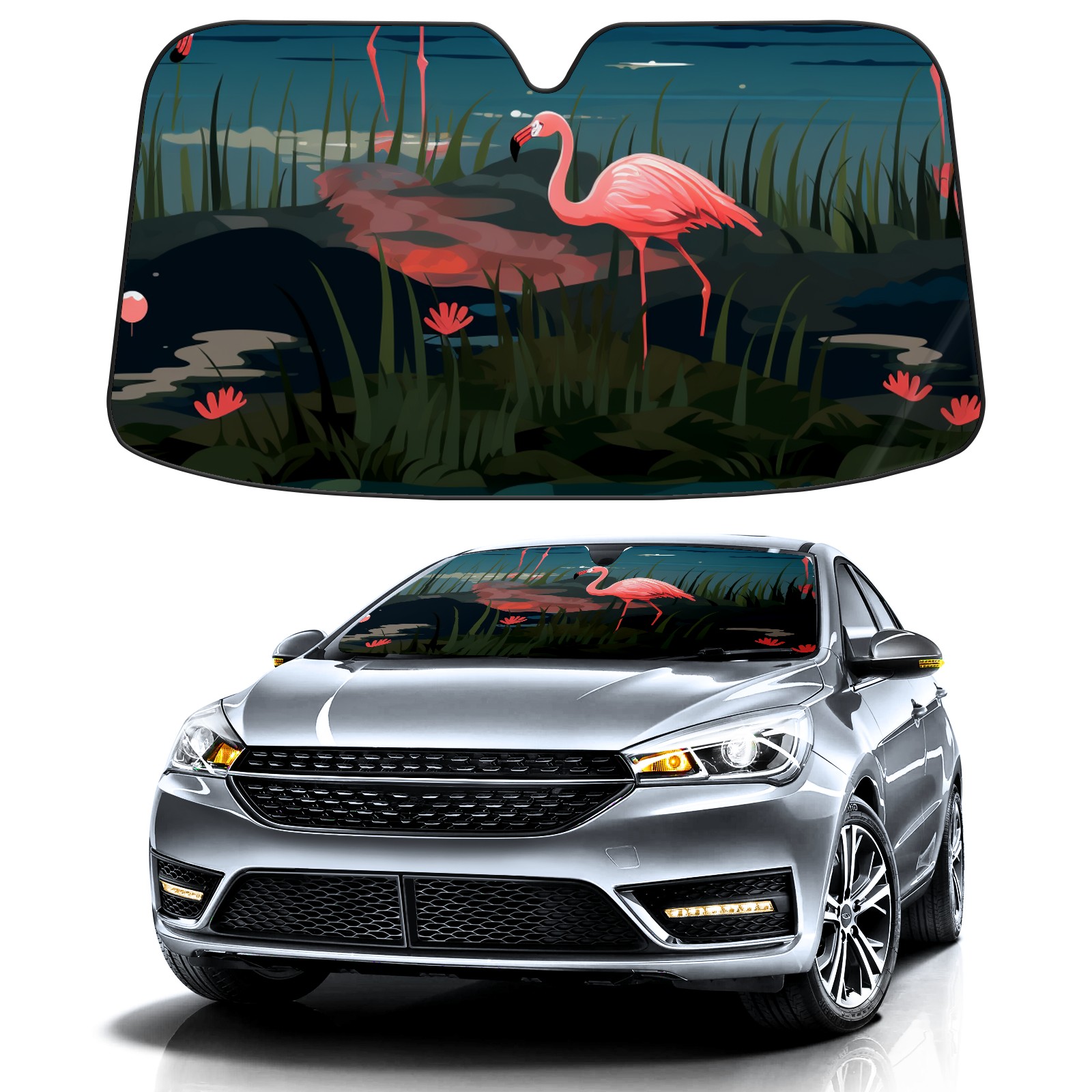 Car Windshield Sun Shade for Front Window Flamingos 58 Foldable Vehicle Windshield Car Sun Visor Covers Automotive Window Protector Car Privacy Sun Blocker