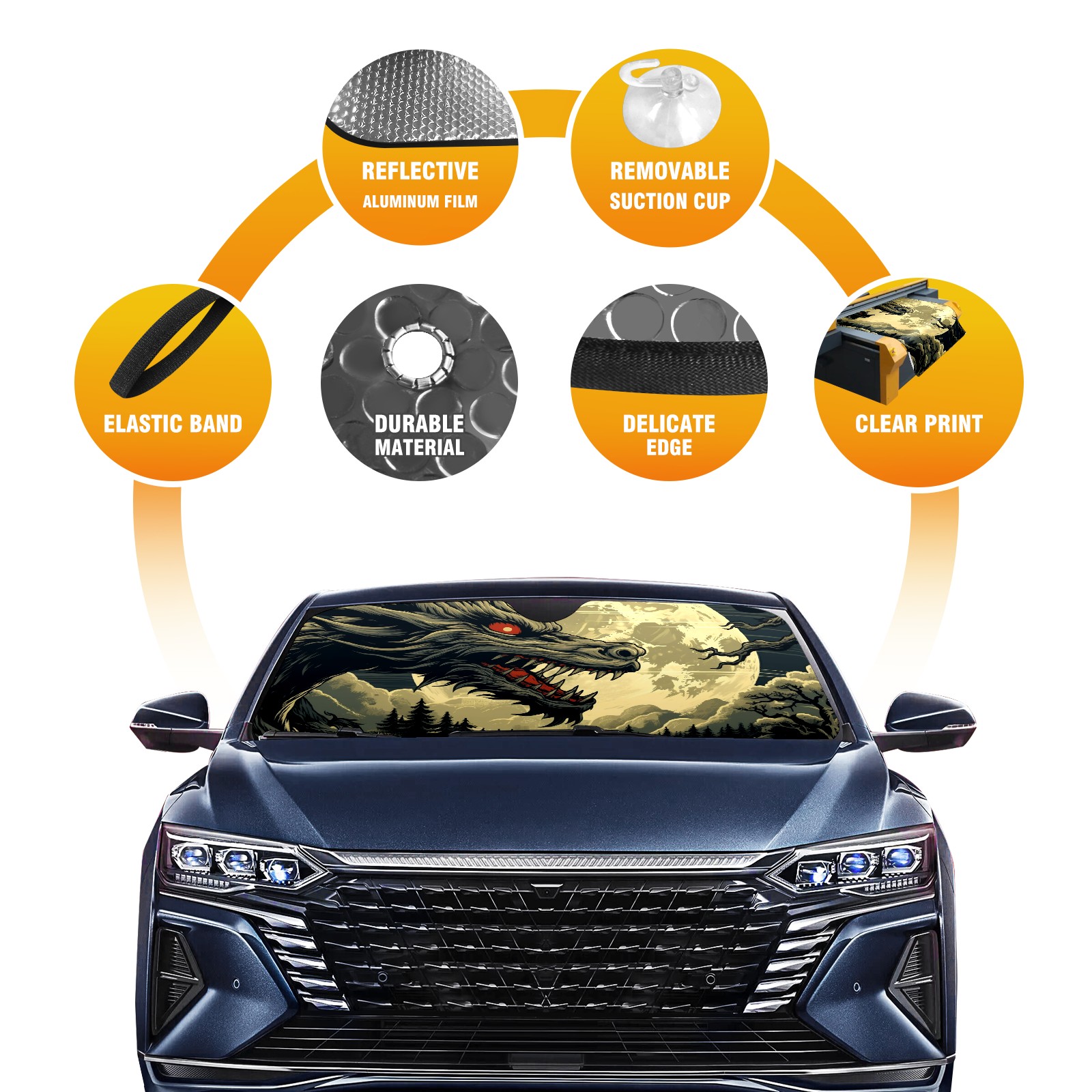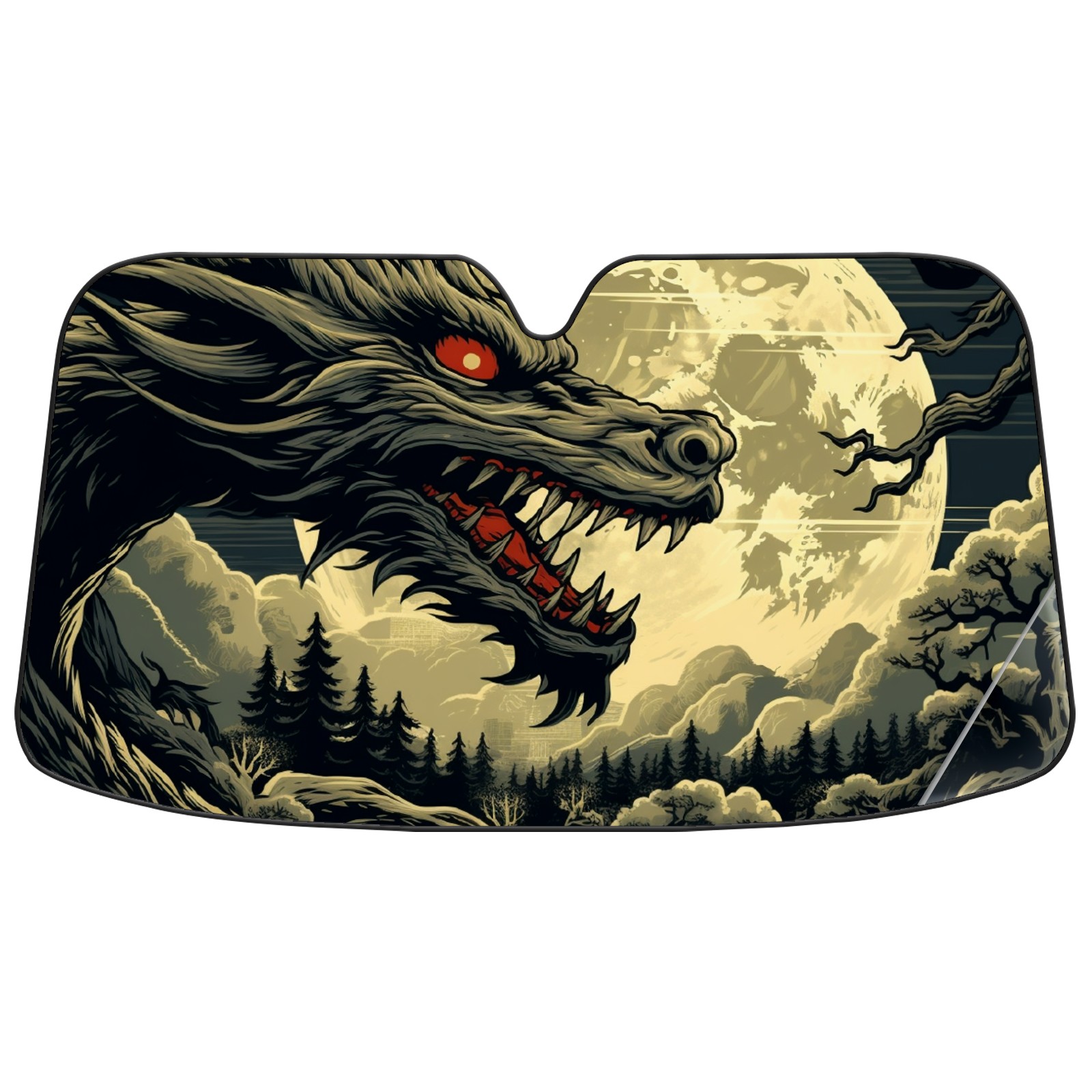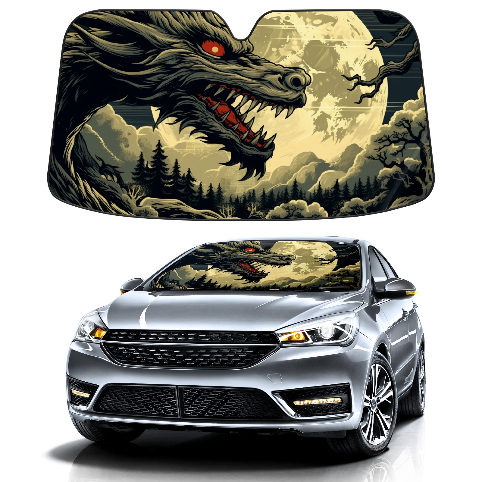 Car Windshield Sun Shade for Front Window Dragon And Moon Foldable Vehicle Windshield Car Sun Visor Covers Automotive Window Protector Car Privacy Sun Blocker