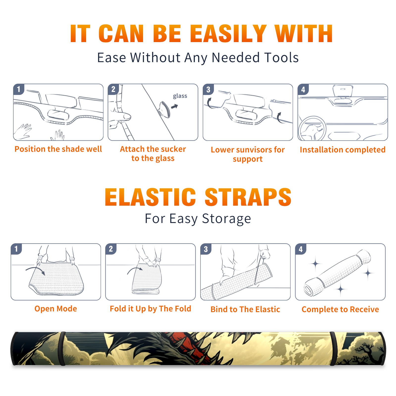 <b>ZXIVGOQFR Foldable Premium Car Windshield Sunshade is your great solution to reduce your car’s interior temperature dramatically! This is definitely a must-have item for your summer travel! </b> <br> ●<b>Size: 63"L x 33.5"W </b> <br></b> ●<b>Blocking Uv Rays & Heat Insulation<br></b> Our vehicle sunshade provides effective UV, sun, and summer heat protection .Maintains dashboards by preventing fading and cracking <br> ●<b>Easy-To-Store Folding Design Makes Storage Convenient <br></b> ZXIVGOQFR car sunshades come with removable suction cups and elastic bands that you can install easily and quickly, and the removable suction cups will not leave any marks on your windows when removed. Within seconds, windshield visor can be installed and removed. When not in use,the front windshield can be easily and effectively placed on the door pocket or the dashboard, which is beautiful and does not take up space in the car.<br> <br> <b>PUT UP A 'PROTECTIVE UMBRELLA' FOR YOUR BELOVED CAR!</b>