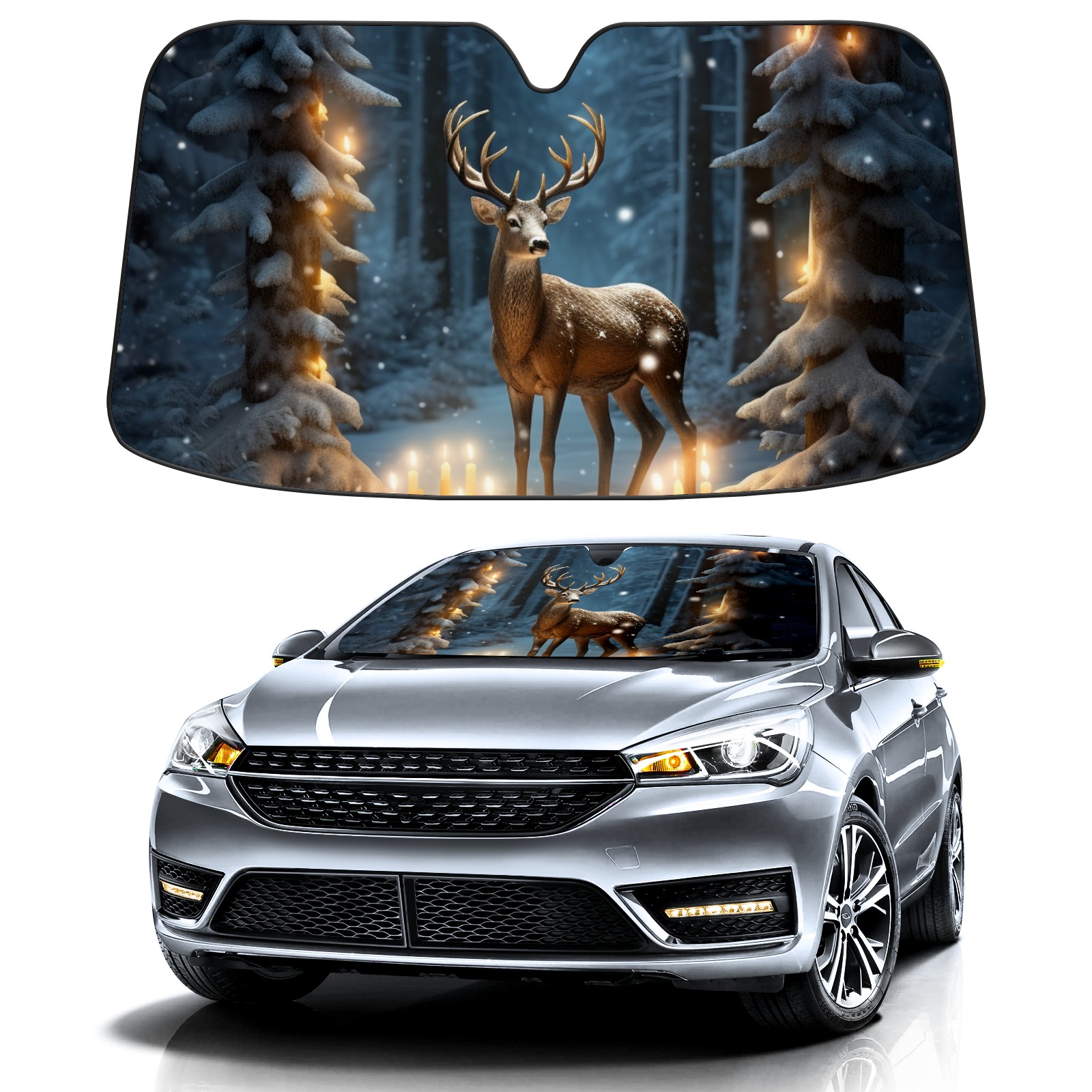 Car Windshield Sun Shade for Front Window Deer 3 Foldable Vehicle Windshield Car Sun Visor Covers Automotive Window Protector Car Privacy Sun Blocker
