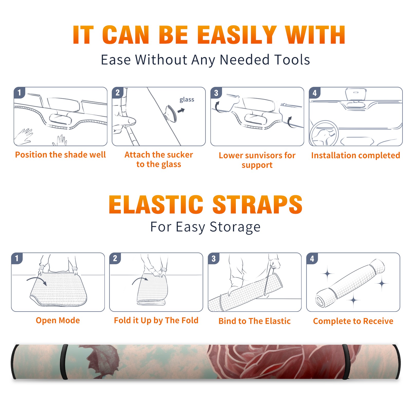 • <b>ZXIVGOQFR Foldable Premium Car Windshield Sunshade is your great solution to reduce your car’s interior temperature dramatically! This is definitely a must-have item for your summer travel! </b> <br> ●<b>Size: 63"L x 33.5"W </b> <br></b> ●<b>Blocking Uv Rays & Heat Insulation<br></b> Our vehicle sunshade provides effective UV, sun, and summer heat protection .Maintains dashboards by preventing fading and cracking <br> ●<b>Easy-To-Store Folding Design Makes Storage Convenient <br></b> ZXIVGOQFR car sunshades come with removable suction cups and elastic bands that you can install easily and quickly, and the removable suction cups will not leave any marks on your windows when removed. Within seconds, windshield visor can be installed and removed. When not in use,the front windshield can be easily and effectively placed on the door pocket or the dashboard, which is beautiful and does not take up space in the car.<br> <br> <b>PUT UP A 'PROTECTIVE UMBRELLA' FOR YOUR BELOVED CAR!</b>