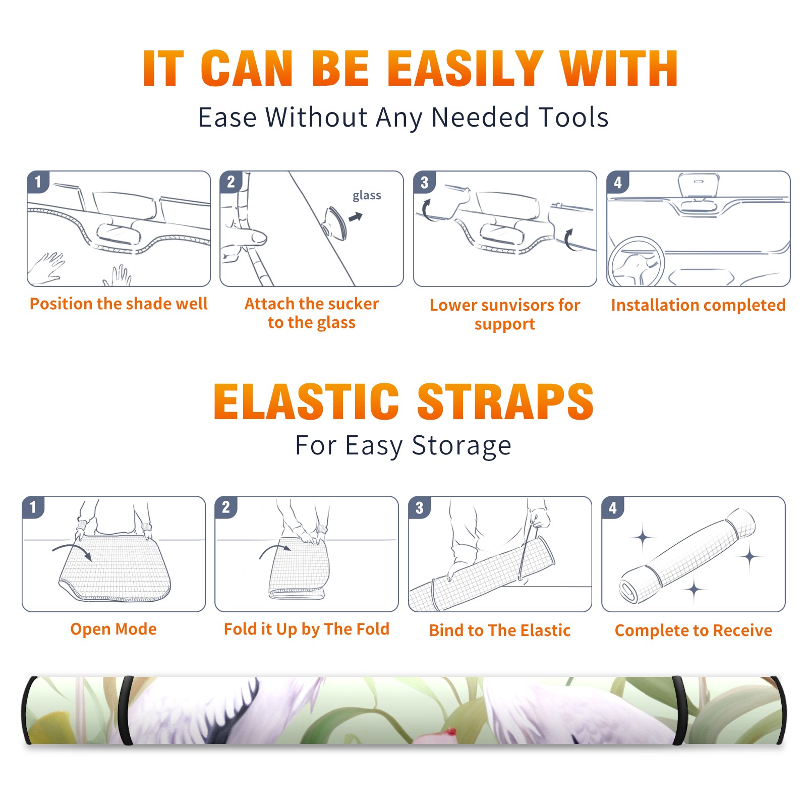 <b>ZXIVGOQFR Foldable Premium Car Windshield Sunshade is your great solution to reduce your car’s interior temperature dramatically! This is definitely a must-have item for your summer travel! </b> <br> ●<b>Size: 63"L x 33.5"W </b> <br></b> ●<b>Blocking Uv Rays & Heat Insulation<br></b> Our vehicle sunshade provides effective UV, sun, and summer heat protection .Maintains dashboards by preventing fading and cracking <br> ●<b>Easy-To-Store Folding Design Makes Storage Convenient <br></b> ZXIVGOQFR car sunshades come with removable suction cups and elastic bands that you can install easily and quickly, and the removable suction cups will not leave any marks on your windows when removed. Within seconds, windshield visor can be installed and removed. When not in use,the front windshield can be easily and effectively placed on the door pocket or the dashboard, which is beautiful and does not take up space in the car.<br> <br> <b>PUT UP A 'PROTECTIVE UMBRELLA' FOR YOUR BELOVED CAR!</b>