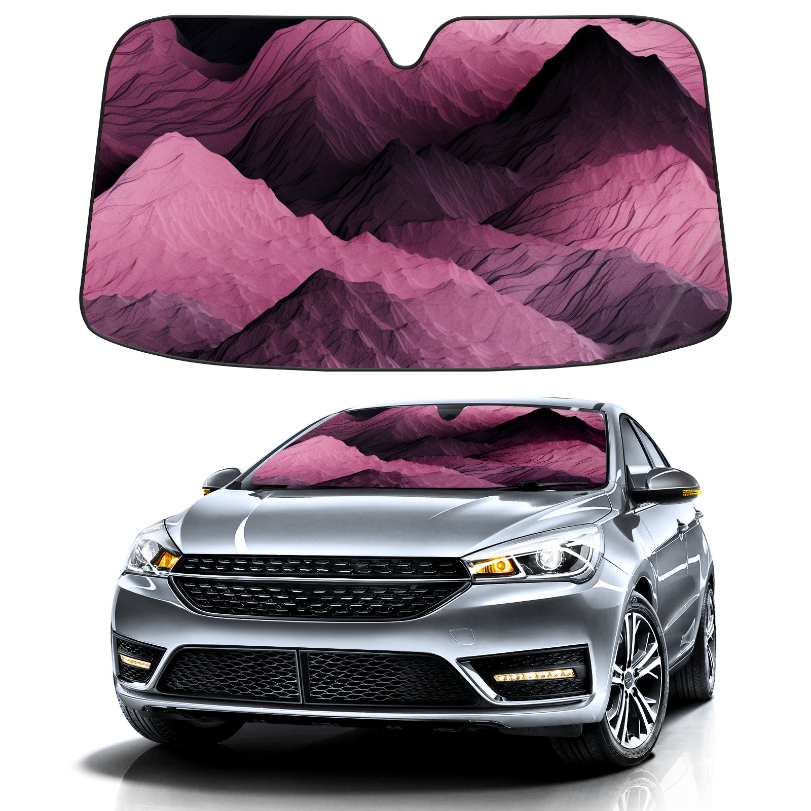 Car Windshield Sun Shade for Front Window Pink Mountain 1 Foldable Vehicle Windshield Car Sun Visor Covers Automotive Window Protector Car Privacy Sun Blocker