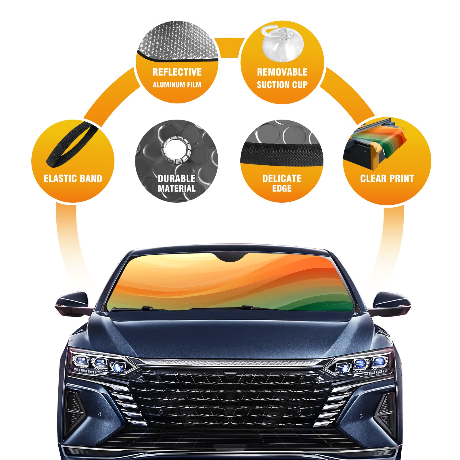 Car Windshield Sun Shade for Front Window Orange And Green 1 Foldable Vehicle Windshield Car Sun Visor Covers Automotive Window Protector Car Privacy Sun Blocker