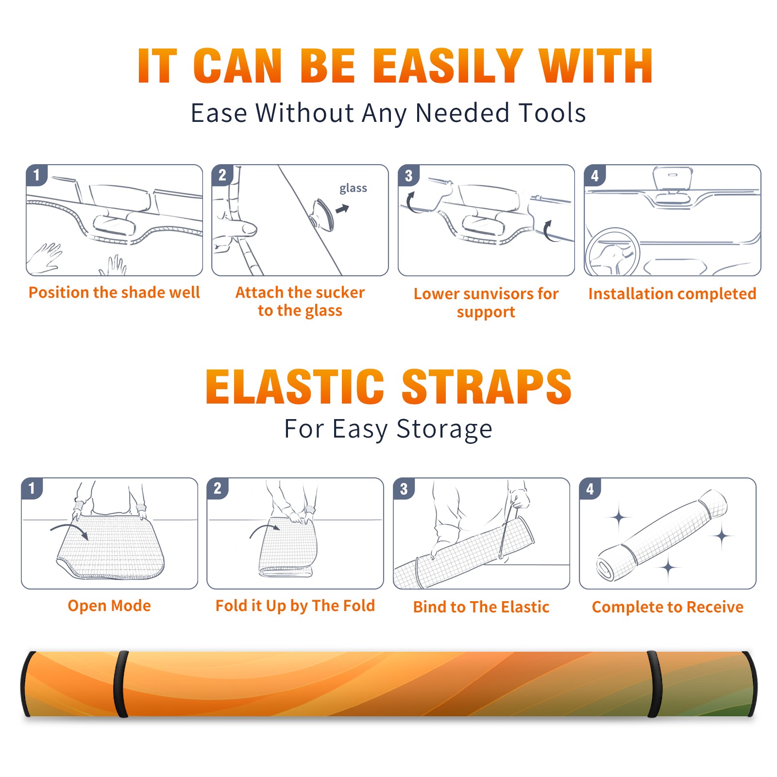 • <b>ZXIVGOQFR Foldable Premium Car Windshield Sunshade is your great solution to reduce your car’s interior temperature dramatically! This is definitely a must-have item for your summer travel! </b> <br> ●<b>Size: 63"L x 33.5"W </b> <br></b> ●<b>Blocking Uv Rays & Heat Insulation<br></b> Our vehicle sunshade provides effective UV, sun, and summer heat protection .Maintains dashboards by preventing fading and cracking <br> ●<b>Easy-To-Store Folding Design Makes Storage Convenient <br></b> ZXIVGOQFR car sunshades come with removable suction cups and elastic bands that you can install easily and quickly, and the removable suction cups will not leave any marks on your windows when removed. Within seconds, windshield visor can be installed and removed. When not in use,the front windshield can be easily and effectively placed on the door pocket or the dashboard, which is beautiful and does not take up space in the car.<br> <br> <b>PUT UP A 'PROTECTIVE UMBRELLA' FOR YOUR BELOVED CAR!</b>