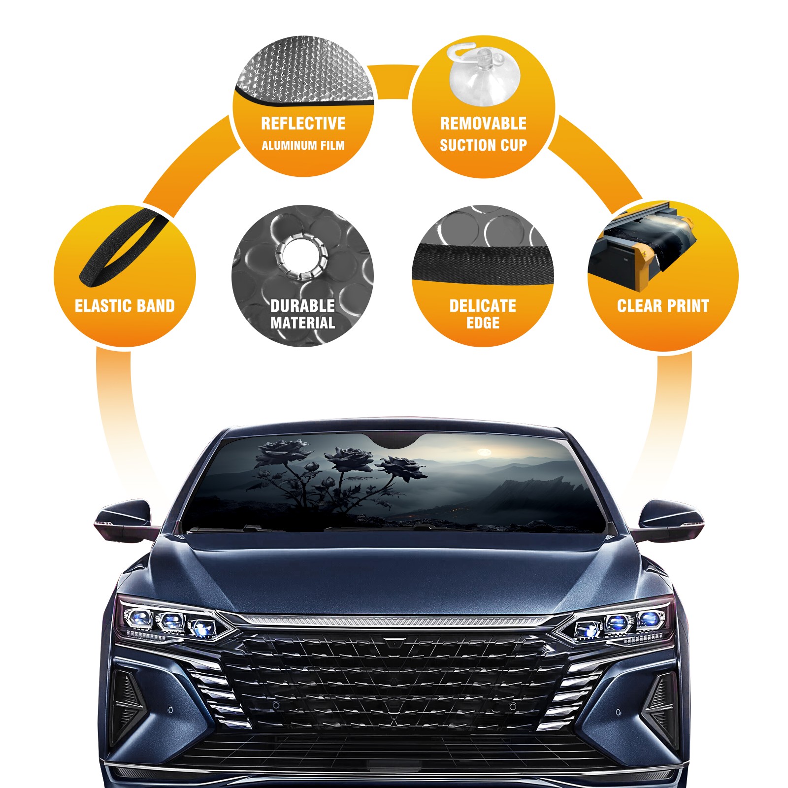 Car Windshield Sun Shade for Front Window Night Rose 3 Foldable Vehicle Windshield Car Sun Visor Covers Automotive Window Protector Car Privacy Sun Blocker