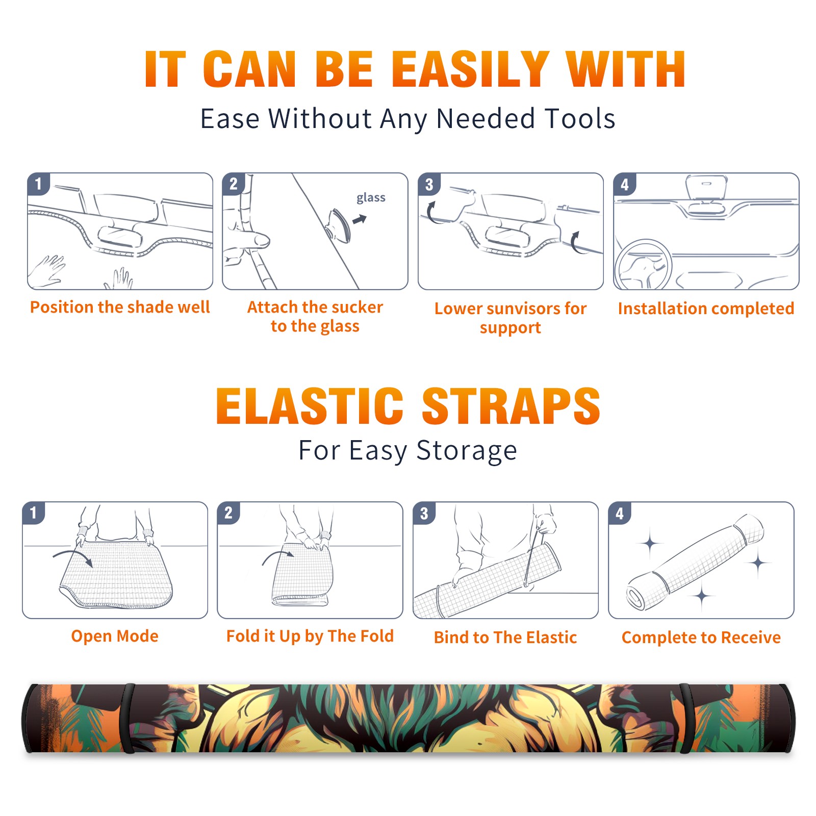 • <b>ZXIVGOQFR Foldable Premium Car Windshield Sunshade is your great solution to reduce your car’s interior temperature dramatically! This is definitely a must-have item for your summer travel! </b> <br> ●<b>Size: 63"L x 33.5"W </b> <br></b> ●<b>Blocking Uv Rays & Heat Insulation<br></b> Our vehicle sunshade provides effective UV, sun, and summer heat protection .Maintains dashboards by preventing fading and cracking <br> ●<b>Easy-To-Store Folding Design Makes Storage Convenient <br></b> ZXIVGOQFR car sunshades come with removable suction cups and elastic bands that you can install easily and quickly, and the removable suction cups will not leave any marks on your windows when removed. Within seconds, windshield visor can be installed and removed. When not in use,the front windshield can be easily and effectively placed on the door pocket or the dashboard, which is beautiful and does not take up space in the car.<br> <br> <b>PUT UP A 'PROTECTIVE UMBRELLA' FOR YOUR BELOVED CAR!</b>
