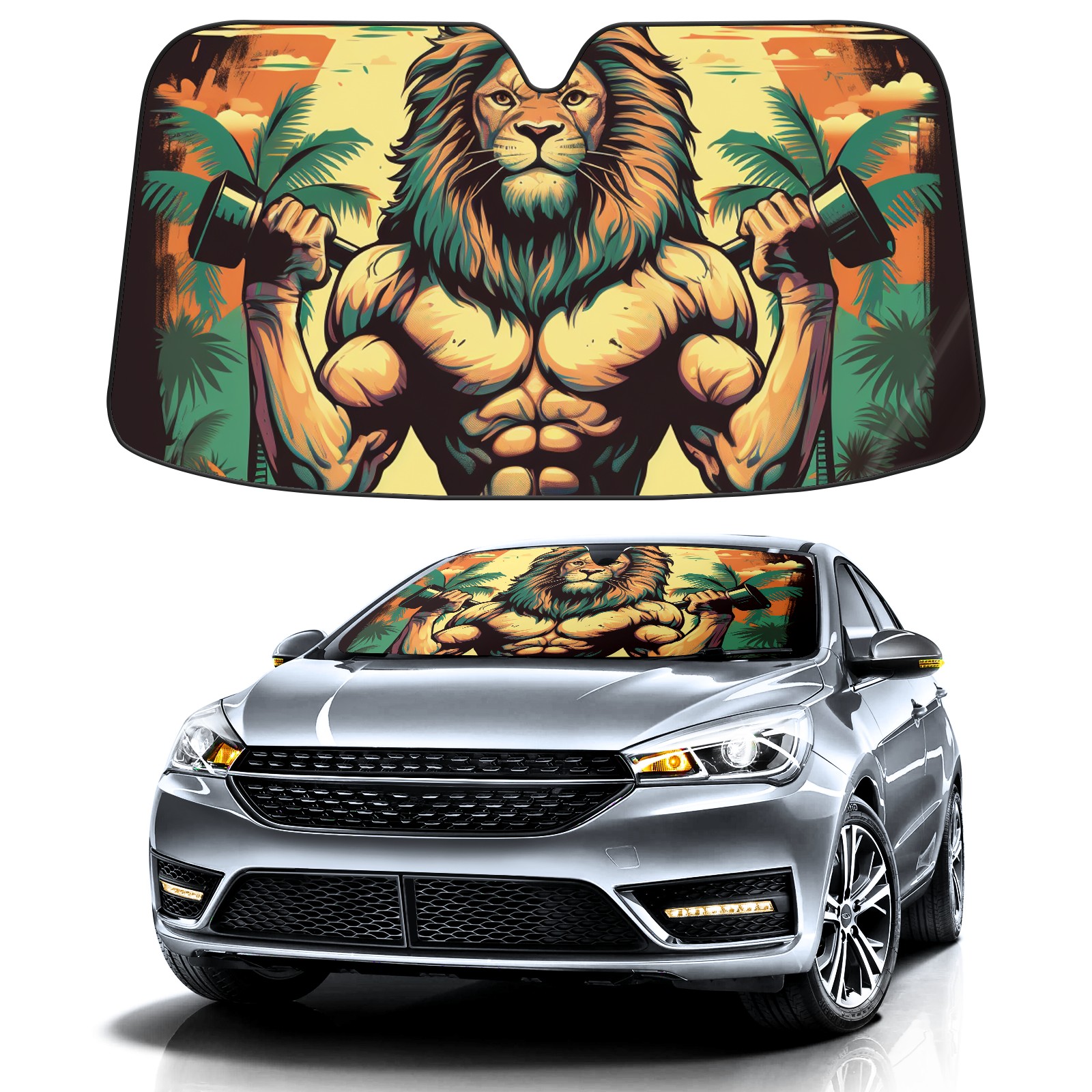 Car Windshield Sun Shade for Front Window Funny Lion 2 Foldable Vehicle Windshield Car Sun Visor Covers Automotive Window Protector Car Privacy Sun Blocker