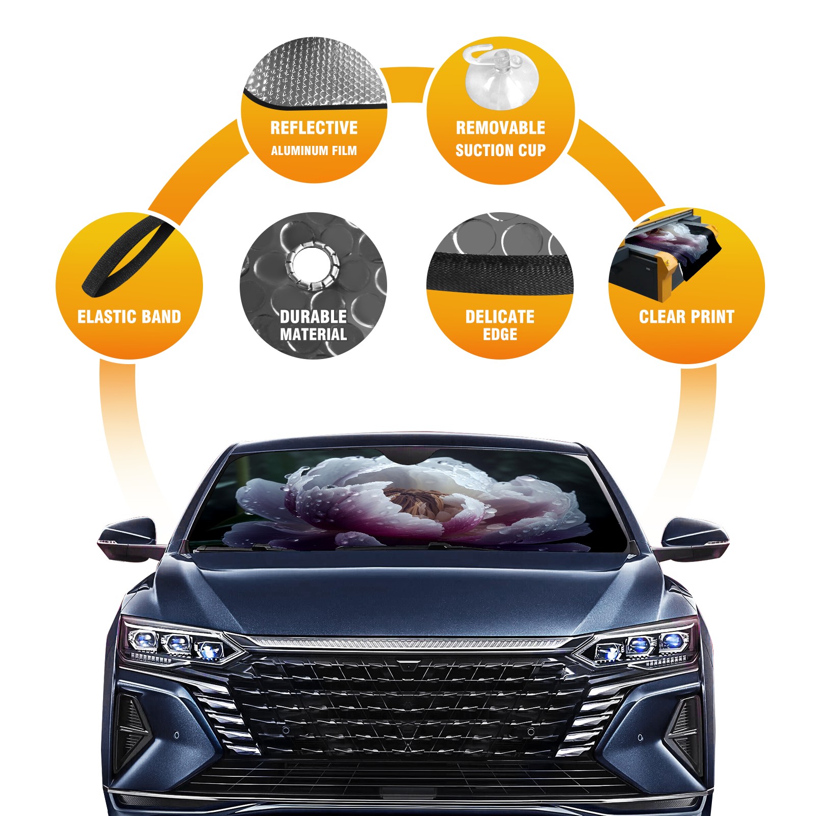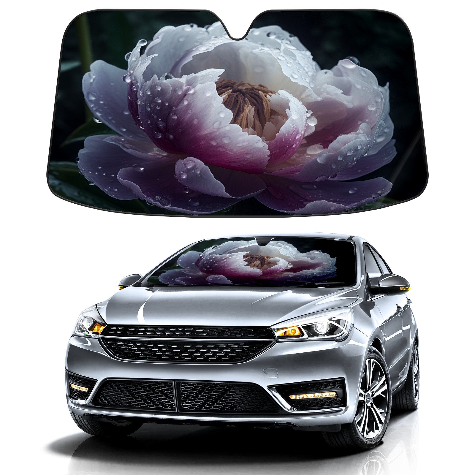 Car Windshield Sun Shade for Front Window Flowers Wet With Dew 4 Foldable Vehicle Windshield Car Sun Visor Covers Automotive Window Protector Car Privacy Sun Blocker