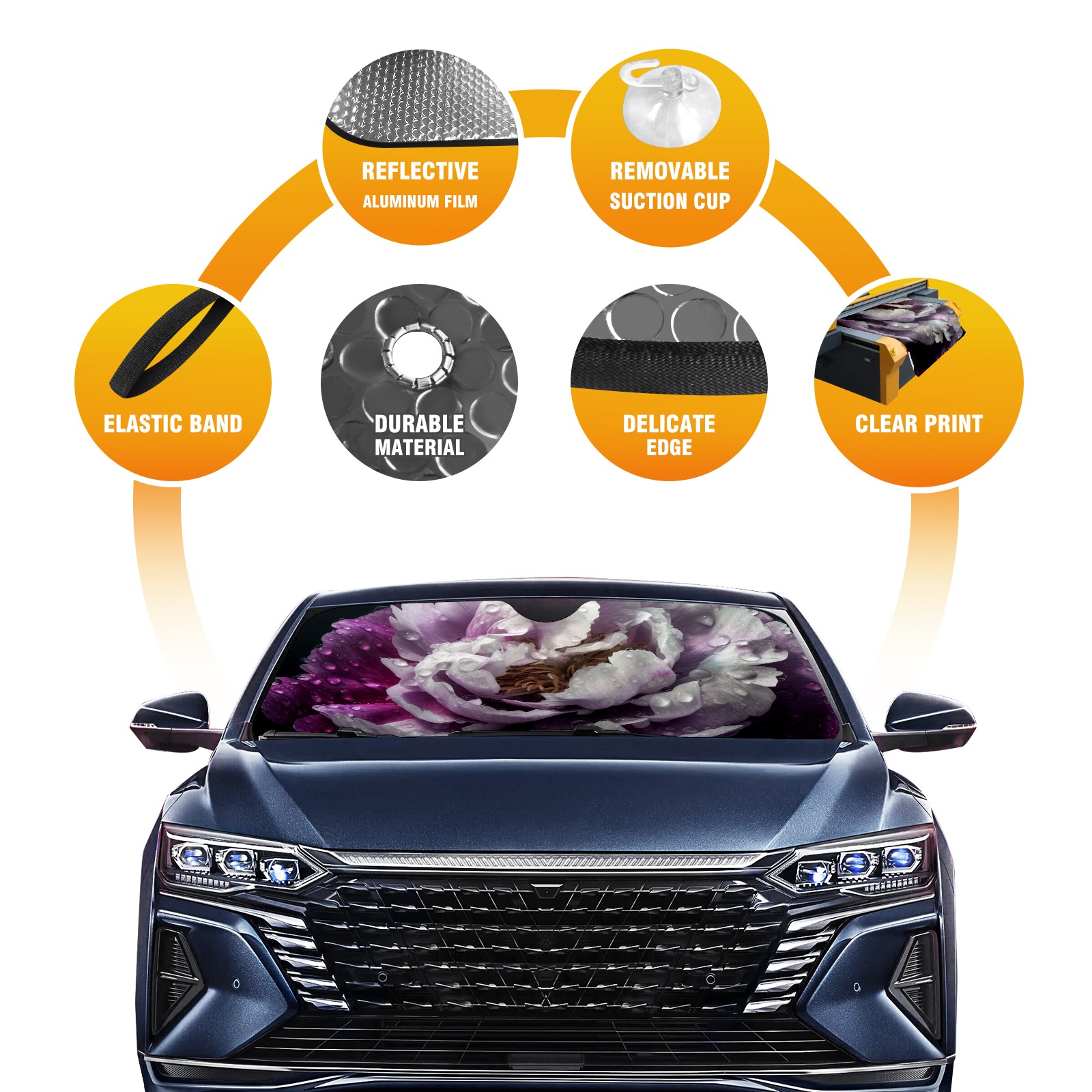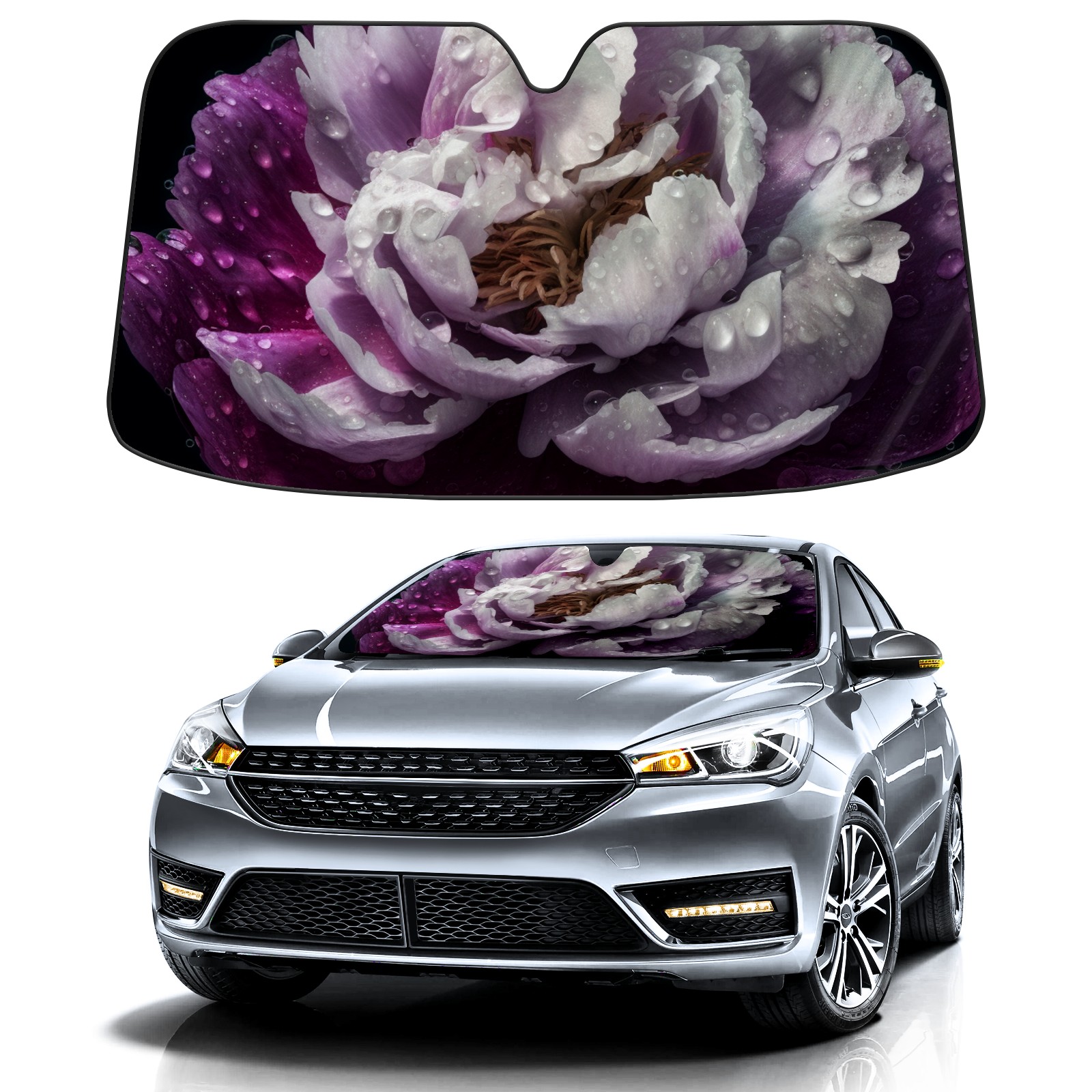 Car Windshield Sun Shade for Front Window Flowers Wet With Dew 3 Foldable Vehicle Windshield Car Sun Visor Covers Automotive Window Protector Car Privacy Sun Blocker