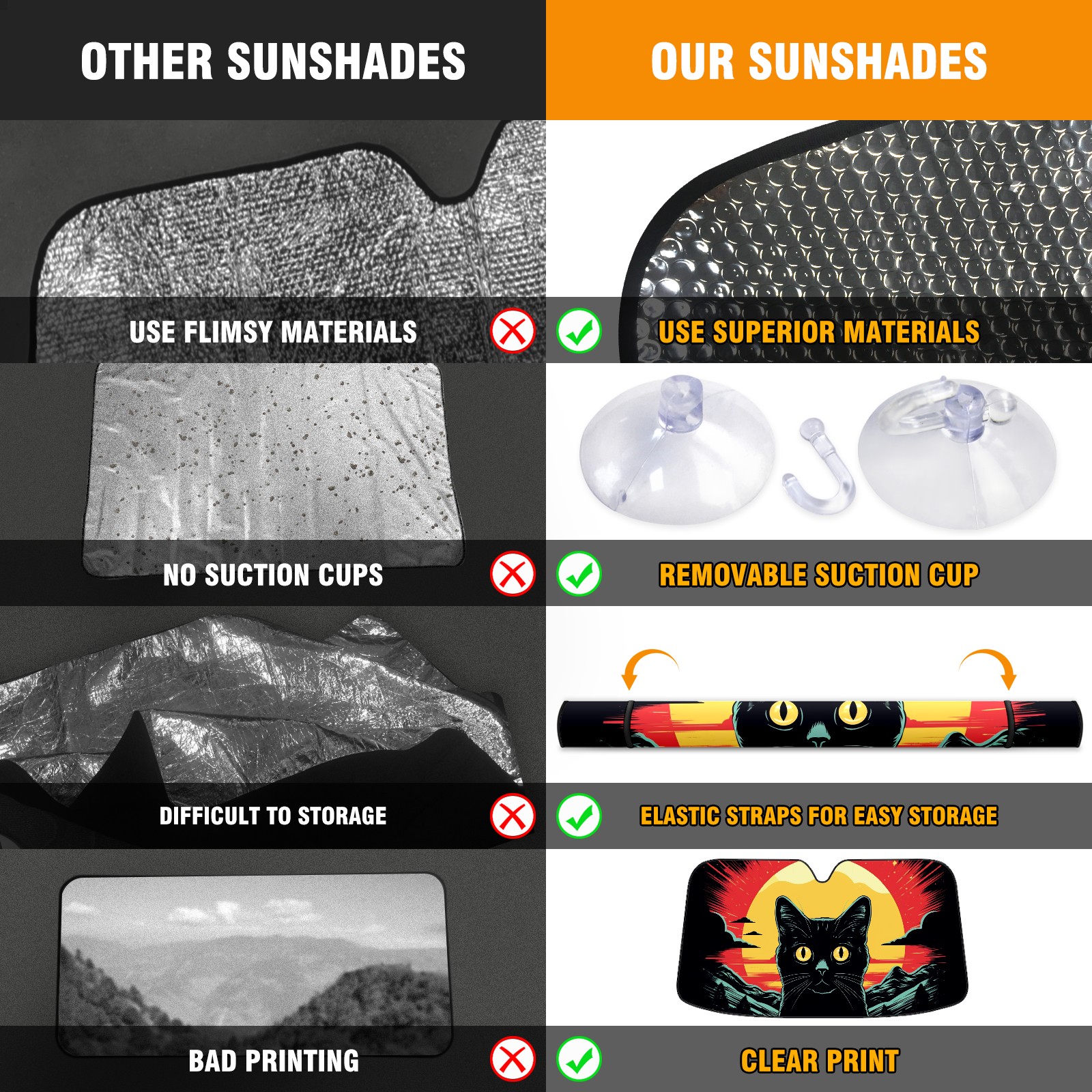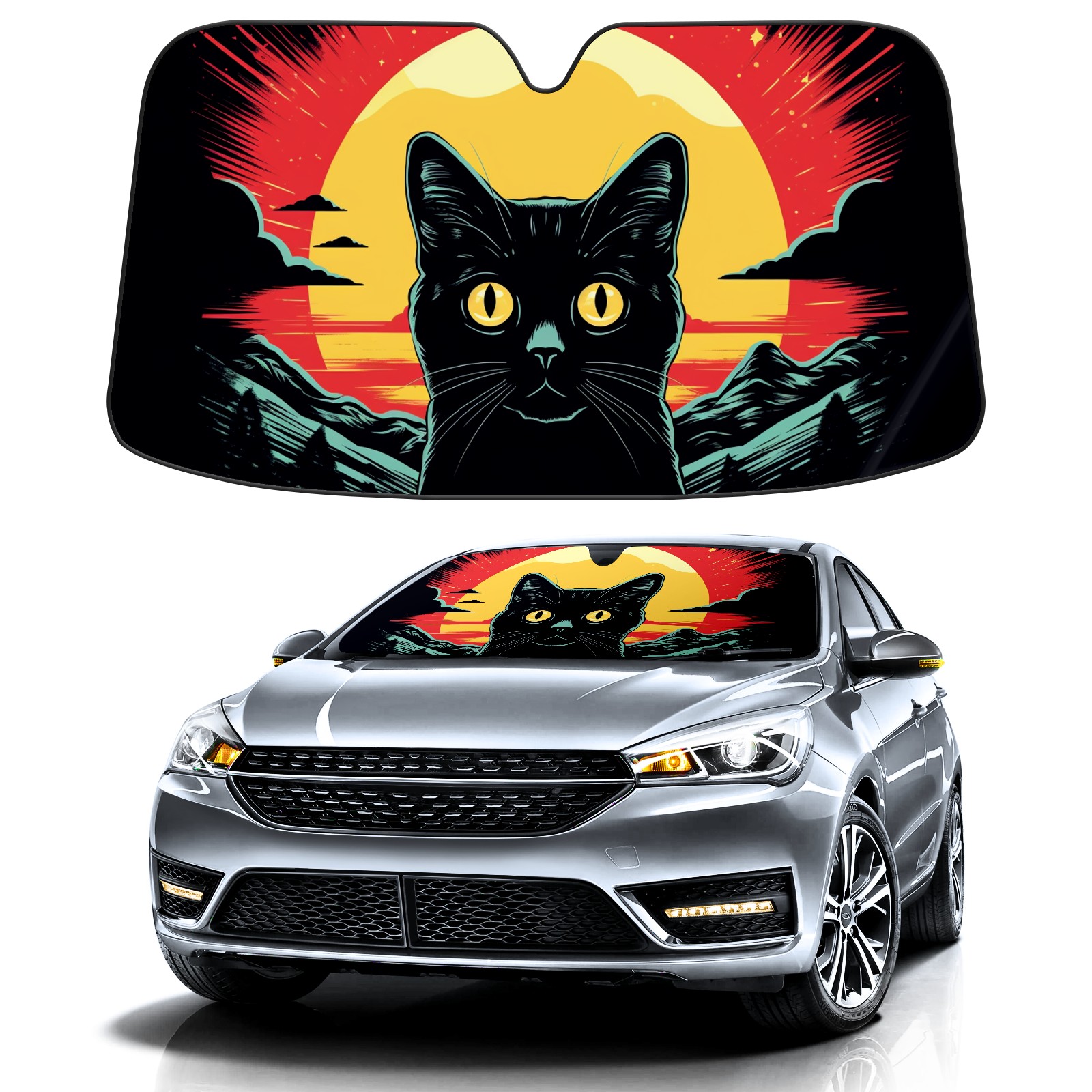 Car Windshield Sun Shade for Front Window Black Cat 1 Foldable Vehicle Windshield Car Sun Visor Covers Automotive Window Protector Car Privacy Sun Blocker