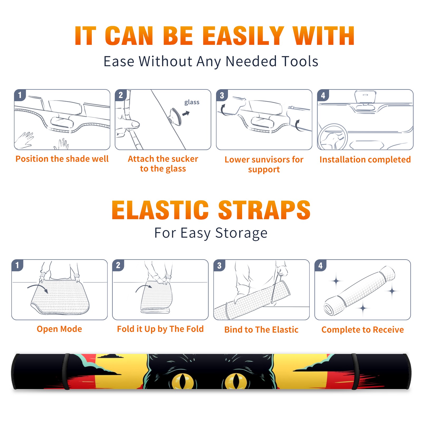 <b>ZXIVGOQFR Foldable Premium Car Windshield Sunshade is your great solution to reduce your car’s interior temperature dramatically! This is definitely a must-have item for your summer travel! </b> <br> ●<b>Size: 63"L x 33.5"W </b> <br></b> ●<b>Blocking Uv Rays & Heat Insulation<br></b> Our vehicle sunshade provides effective UV, sun, and summer heat protection .Maintains dashboards by preventing fading and cracking <br> ●<b>Easy-To-Store Folding Design Makes Storage Convenient <br></b> ZXIVGOQFR car sunshades come with removable suction cups and elastic bands that you can install easily and quickly, and the removable suction cups will not leave any marks on your windows when removed. Within seconds, windshield visor can be installed and removed. When not in use,the front windshield can be easily and effectively placed on the door pocket or the dashboard, which is beautiful and does not take up space in the car.<br> <br> <b>PUT UP A 'PROTECTIVE UMBRELLA' FOR YOUR BELOVED CAR!</b>