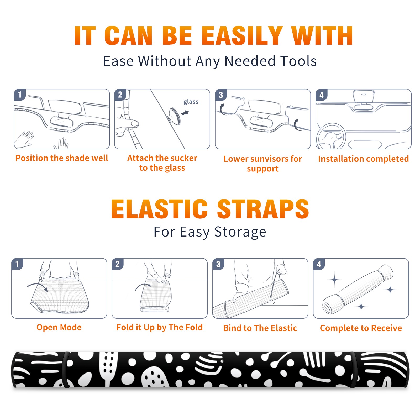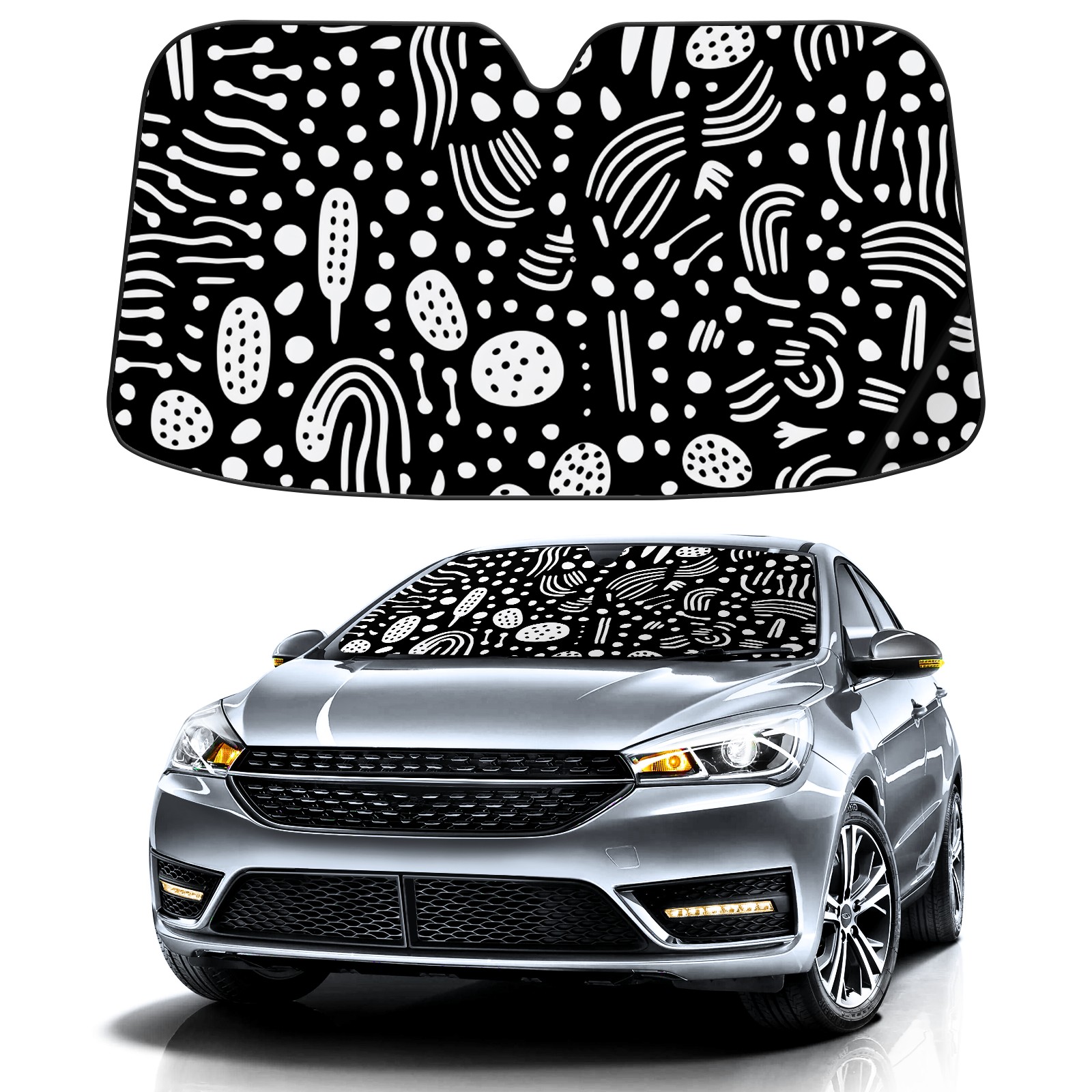 Car Windshield Sun Shade for Front Window Black And White 4 Foldable Vehicle Windshield Car Sun Visor Covers Automotive Window Protector Car Privacy Sun Blocker